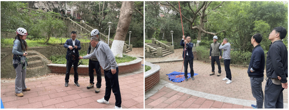 座谈结束后,参会领导前往攀树基地进行实地调研,观看了学生的攀树示范,并听取了郑达雄老师的现场讲解。上海交通大学体育系的领导和老师们对厦门大学攀树课程的开展给予了高度评价,并表示希望两校能在攀树运动等领域加强合作,共同推动体育教育的发展。
