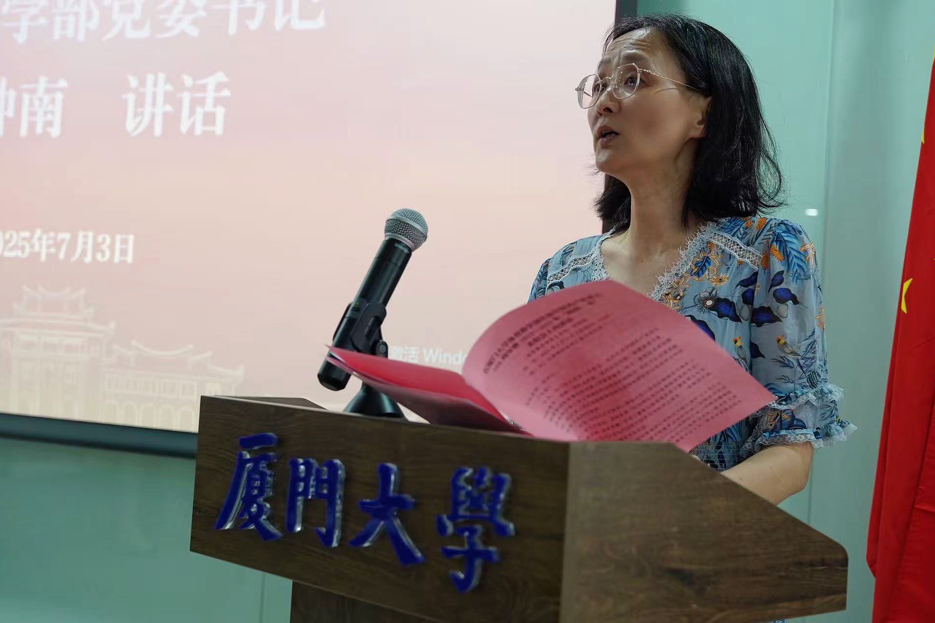 会上,部党委书记刘钟南宣布获得厦门大学2023-2025年优秀共产党员、优秀党务工作者名单,王鹏获评“厦门大学优秀共产党员”,张锡臻获评“厦门大学优秀党务工作者”;宣读《关于表彰厦门大学体育教学部2023-2025年优秀共产党员、优秀党务工作者、先进党支部的决定》,谭江明、黄浩洁、胡立虹、林清江、冯承墘等5名同志获评“体育教学部优秀共产党员”,黄惠玲、孟蒙、李春早等3名同志获评“体育教学部优秀党务工作者”,武术党支部和球类一党支部获评“体育教学部先进党支部”。刘钟南、部副主任吴飞腾、翁兴和分别为获奖集体和个人颁发荣誉证书。
