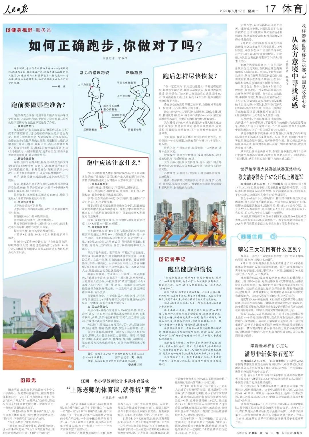 2025年6月17日,在《人民日报》刊载的运动科普《跑中应该注意什么?》中,厦门大学体育教学部副教授黄力生系统阐释了科学跑步的核心要义。他首先详解了正确跑姿的五大关键,然后在训练强度和安全防护层面都提出了针对性的建议。这篇刊发于全民健身前沿阵地的专业指南,不仅彰显了黄力生作为中国马拉松年度人物的专业知识,更凸显了厦门大学以专业智慧服务社会、引领科学运动风尚的使命担当,为健康中国战略注入高校力量。