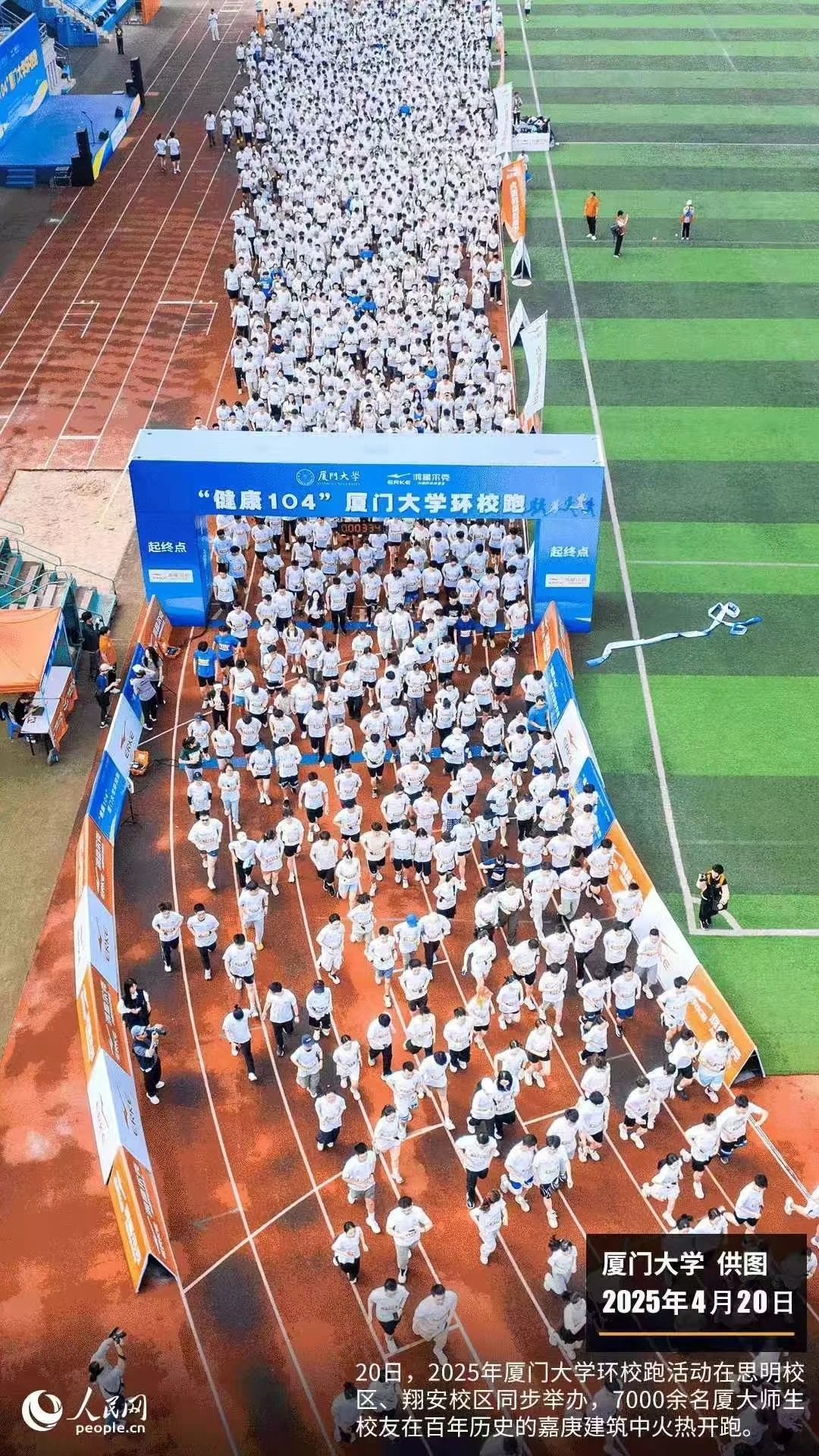 2025年4月20日,厦门大学环校跑活动在思明校区、翔安校区同步举行,7000余名厦大师生校友用脚步丈量校园,用汗水诠释青春,共同传承嘉庚精神,获得《人民网》图片报道。这场师生参与的体育盛景,不仅是厦大深化体育教育改革、丰富课程体系、繁荣社团活动的生动实践,更将"人人关注健康、人人热爱运动"的校园文化推向新高度。