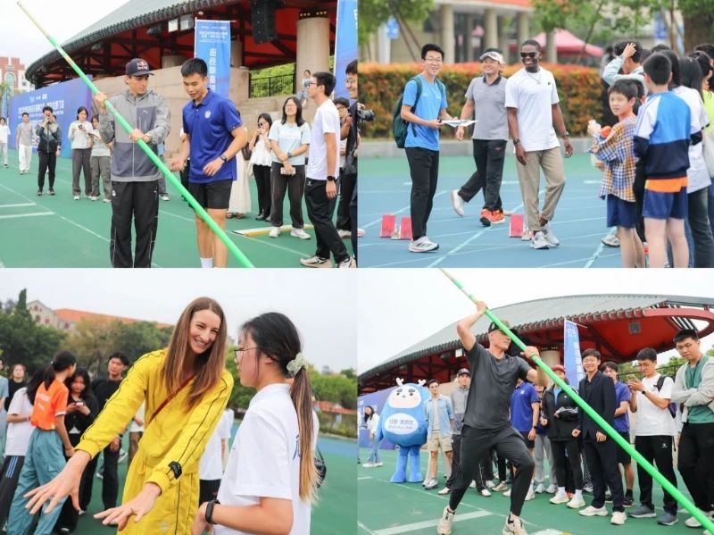 2025年4月24日,厦门大学迎来田径冠军盛会:巴黎奥运会冠军、撑竿跳高世界纪录保持者、瑞典天才选手蒙多·杜普兰蒂斯(Mondo Duplantis),澳大利亚跳高世锦赛冠军尼古拉·奥利斯拉格斯(Nicola Olyslagers),美国撑竿跳高名将、两届世锦赛冠军山姆·肯德里克斯(Sam Kendricks),巴黎奥运会4*400米接力金牌得主克里斯托弗·贝利(Christopher Bailey)齐聚校园。四位田径冠军不仅在深度访谈环节金句频出,更移步演武田径场化身"明星教练"。
