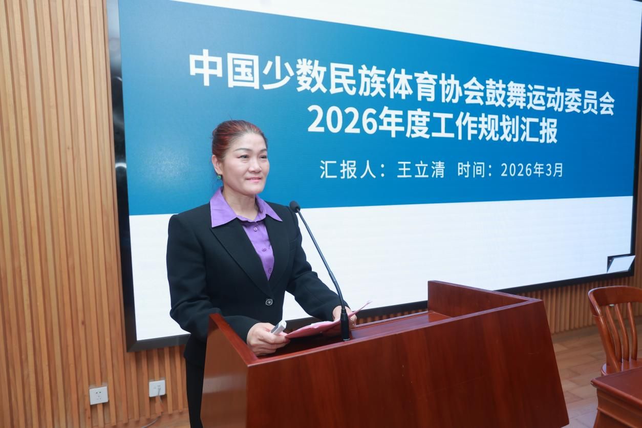 成立大会后,中国少数民族体育协会鼓舞运动委员会第一届第一次会员代表大会接续召开,委员会秘书长王立清作《2026年鼓舞运动委员会年度工作计划报告》。
