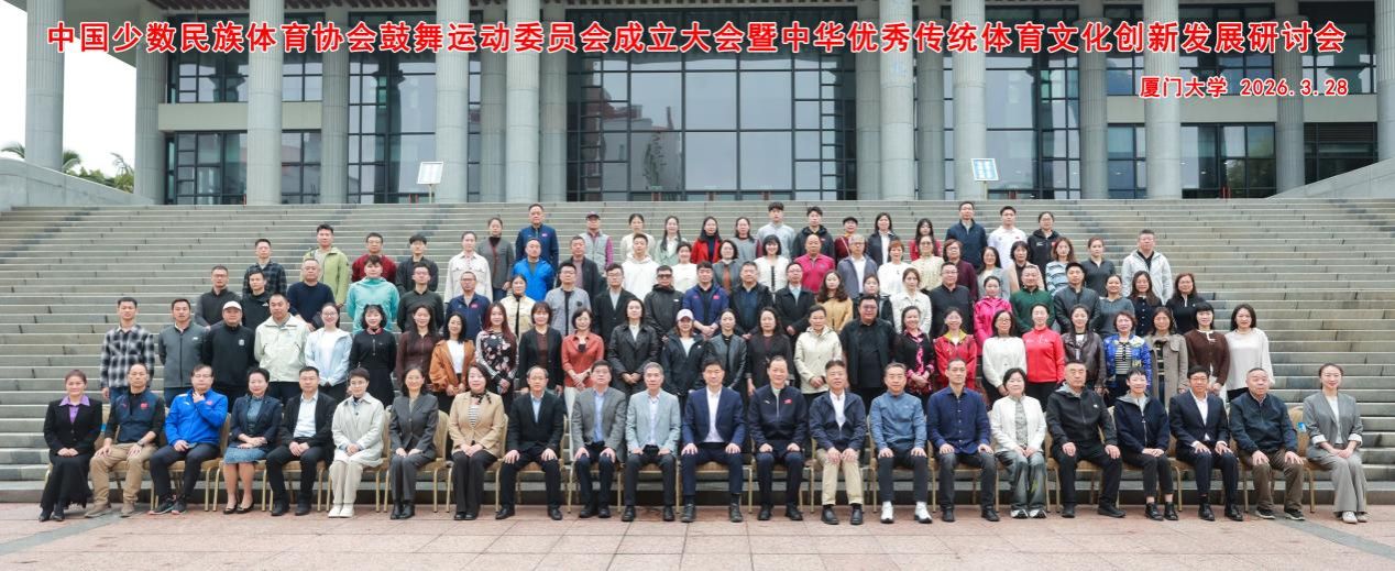 2026 年3月28日,中国少数民族体育协会鼓舞运动委员会成立大会暨中华优秀传统体育文化创新发展研讨会在厦门大学举行,为民族传统体育文化传承创新、鼓舞运动规范化发展搭建专业平台,为践行“铸牢中华民族共同体意识”注入体育新动能。