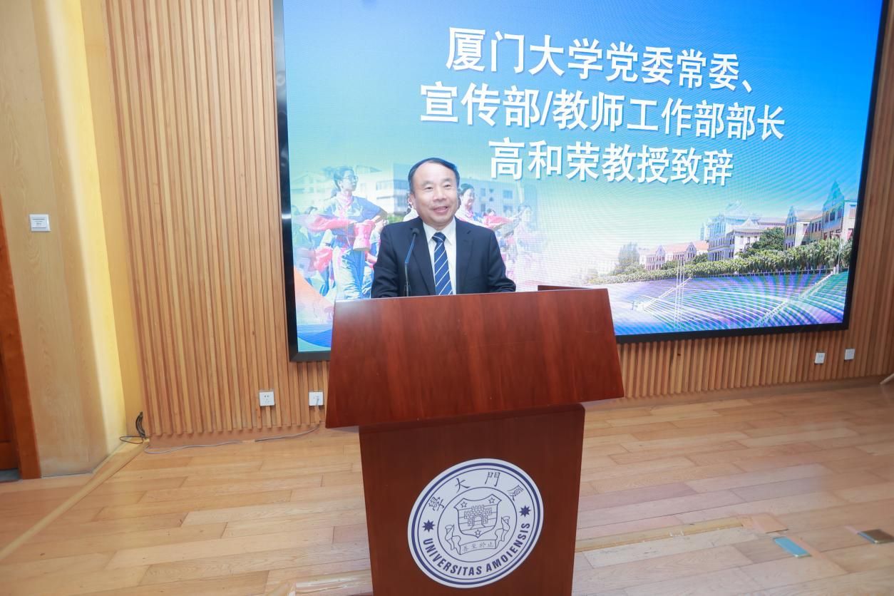 高和荣在致辞中代表厦门大学对大会的胜利召开和鼓舞运动委员会的成立表示祝贺,他指出,厦门大学始终重视体育育人与文化传承融合发展,愿以此次大会为契机深化多方合作,携手推动中华优秀传统体育文化薪火相传、创新发展。