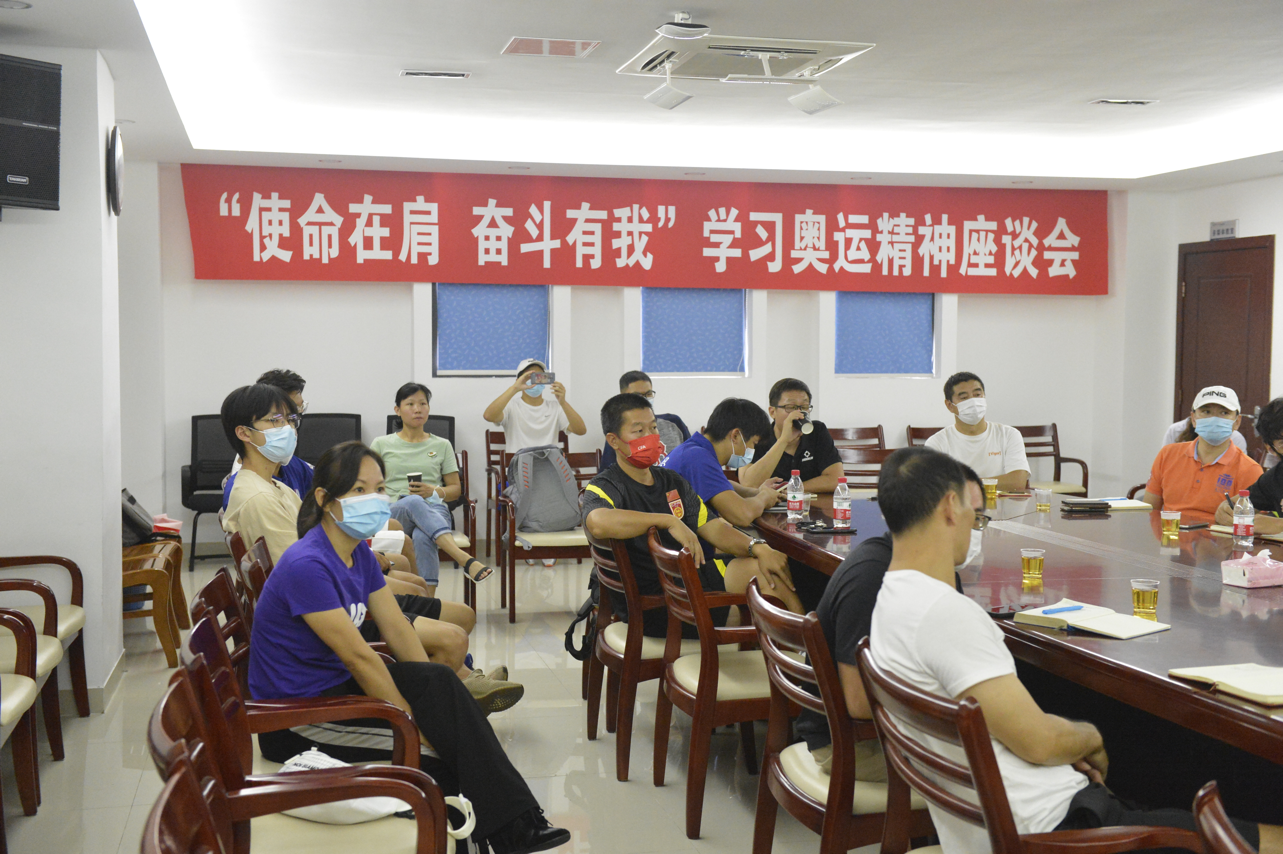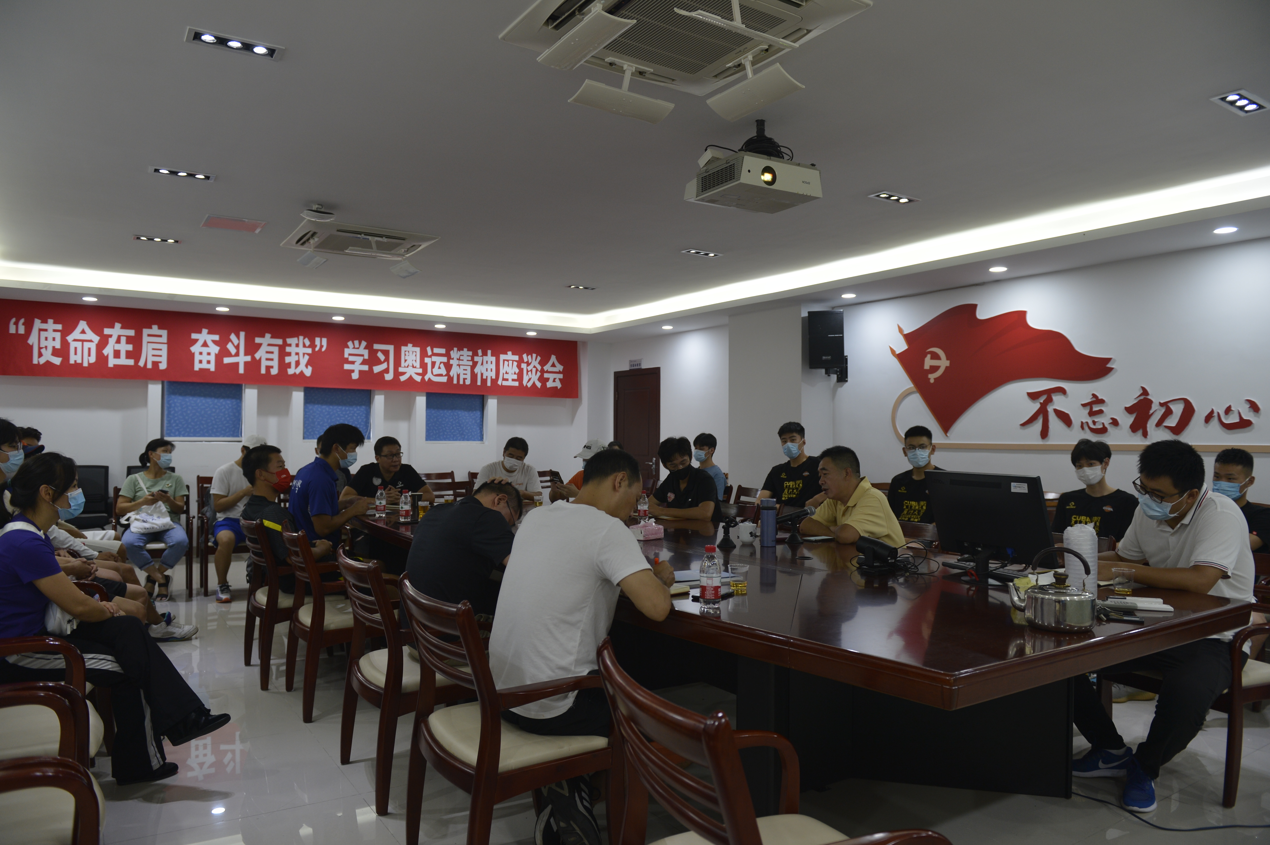 8月9日上午,体育教学部在王清明游泳馆会议室召开“使命在肩 奋斗有我”学习奥运精神座谈会,重温中国健儿在东京奥运会赛场的拼搏事迹,学习感悟中国代表团奥运精神,探讨如何更好推动我校体育工作,为建设体育强国、健康中国作出努力。体育教学部党政领导班子成员,校篮球队、足球队、武术队、橄榄球队等高水平运动队教练员和运动员代表参加会议。会议由体育教学部党委书记郑树东主持。