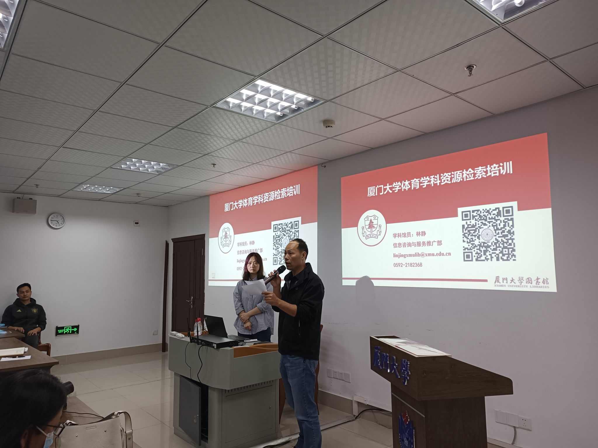 4月18日下午,体育教学部在演武田径场会议室举办了两场学术讲座。本次讲座特邀请到图书馆信息咨询与服务推广部主任林静博士和图书馆信息咨询与服务推广部、文献传递与馆际互借主管林奕纯老师主讲,讲座内容主要围绕介绍图书馆体育学科资源分布以及体育相关文献检索与全文获取方法。