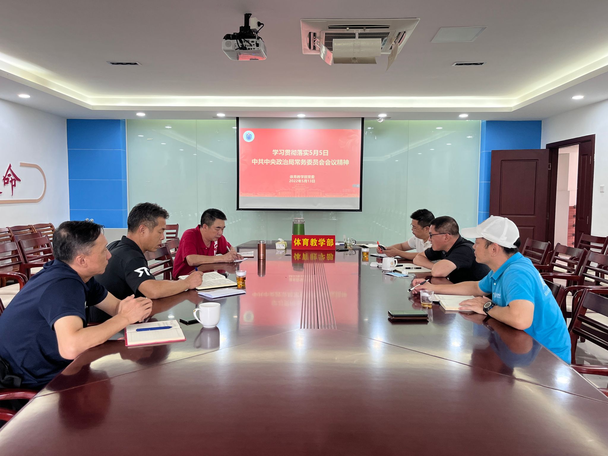 5月13日下午,体育教学部召开党政联席会和疫情防控工作部署会,深入学习5月5日中共中央政治局常务委员会会议精神,贯彻落实校党委工作部署。会议由部党委书记郑树东主持,党政班子成员、党支部书记参会。