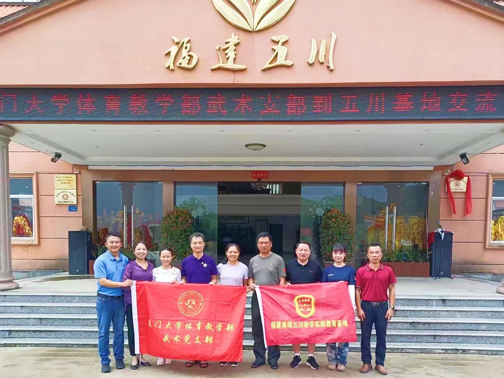 艳阳高照,繁花似锦。7月1日-2日,为庆祝中国共产党成立101周年,武术党支部党员赴福建省漳州南靖五川中小学研学实践教育基地,参与福建南强武术研究院五川研习基地(南靖)揭牌仪式,开展实地参访研学活动。与基地董事长林亚通先生、福建土楼德育基地王旭辉主任、南靖县人民武装部参谋长吴志杰同志共商福建武术发展。