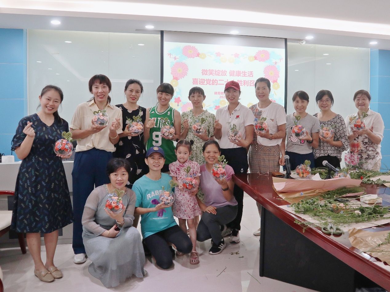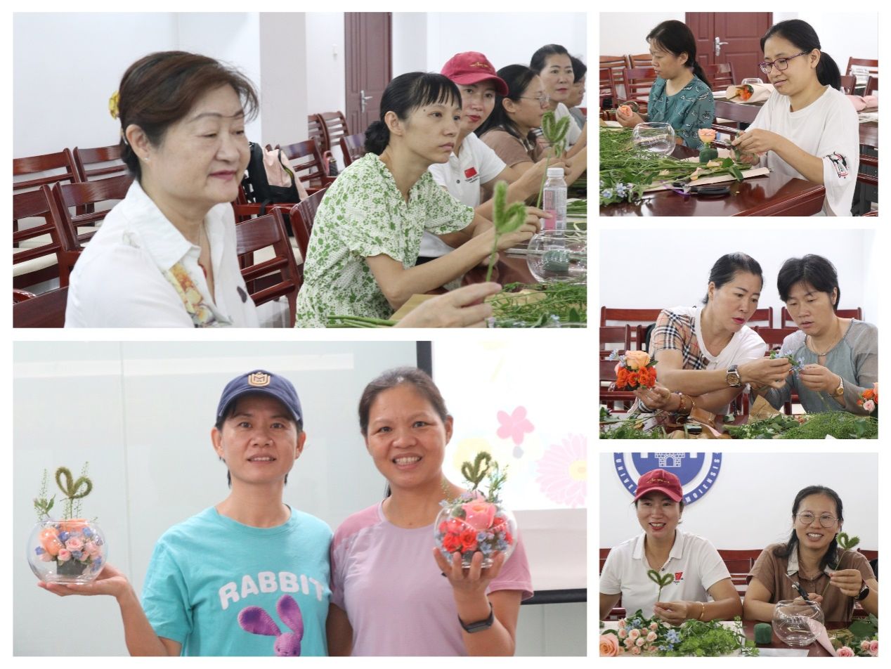 9月19日下午,体育教学部妇委会举办“微笑绽放 健康生活”花艺体验活动,女教职工们欢聚一堂、巧手插花、品香交流、分享故事,用鲜花和美好喜迎党的二十大胜利召开。