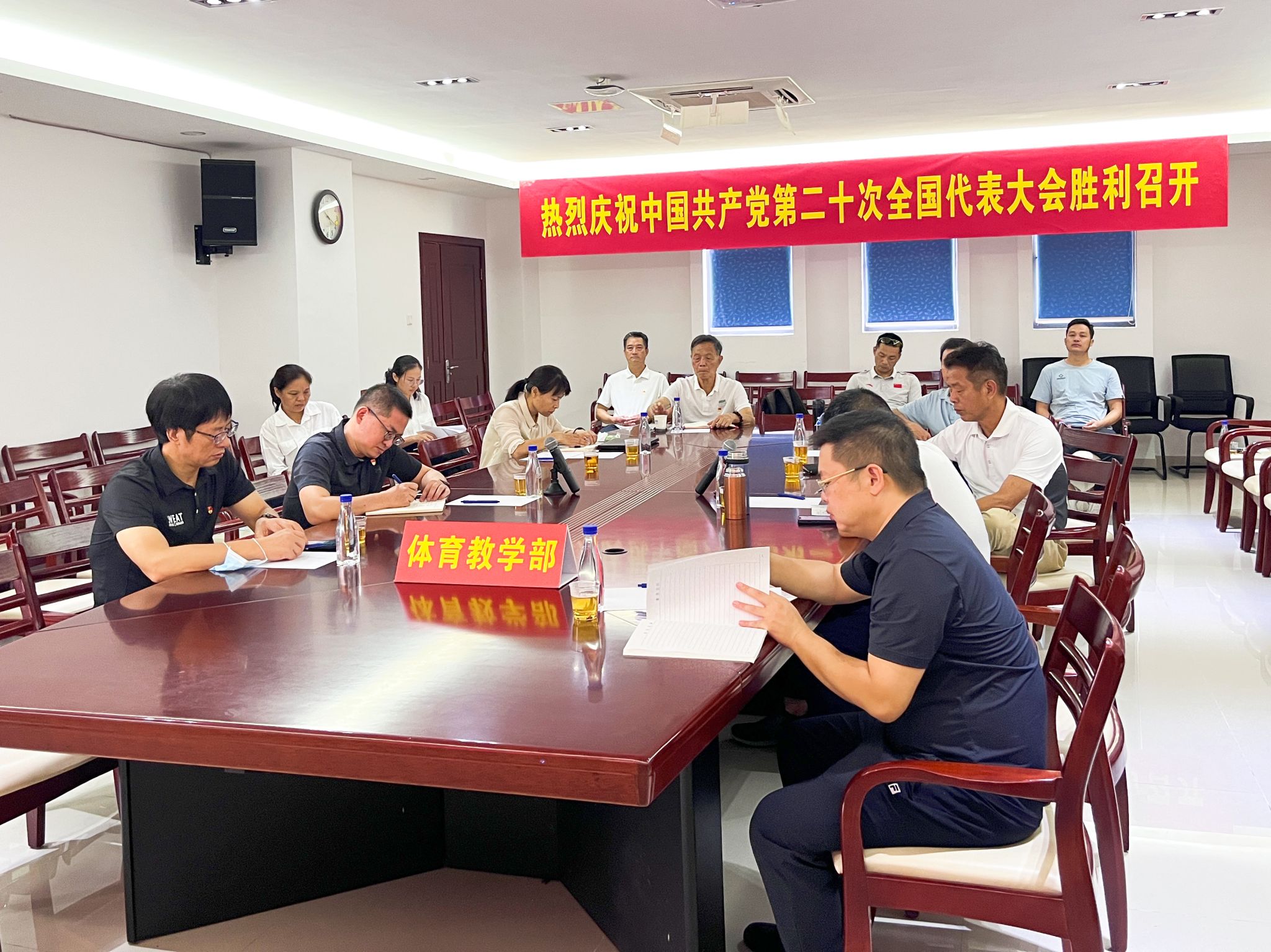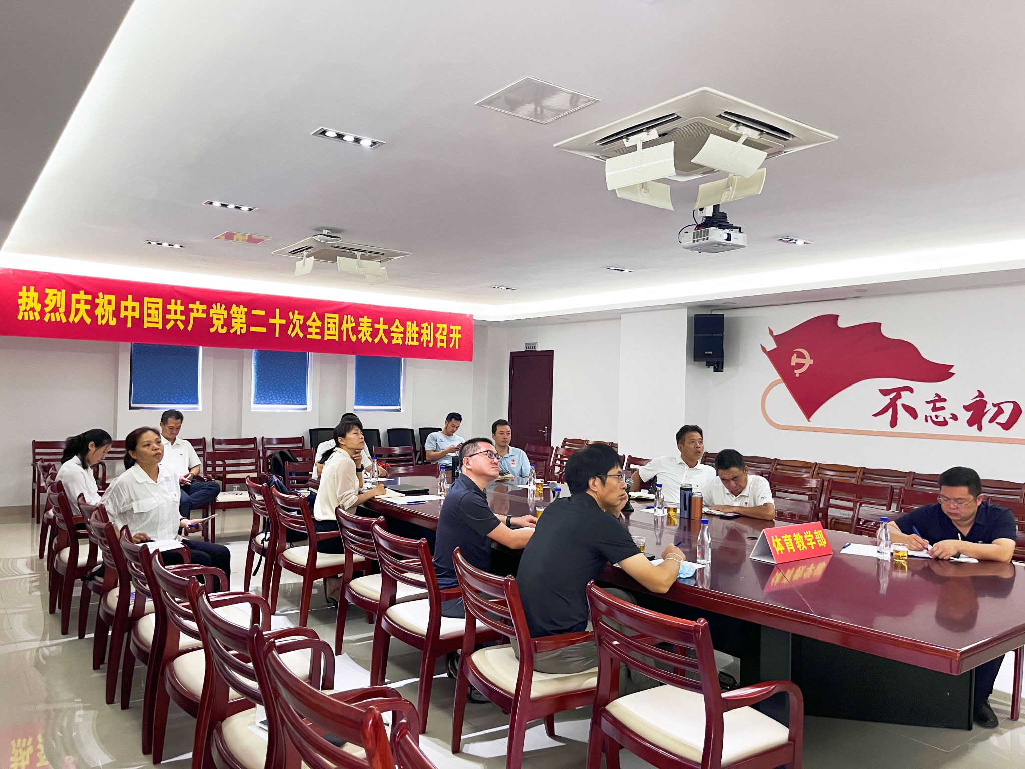 10月16日上午,中国共产党第二十次全国代表大会在人民大会堂开幕。习近平总书记代表第十九届中央委员会向党的二十大作报告。体育教学部党政班子成员、党委委员、党支部书记、中心主任和教研室主任,集体收看了党的二十大开幕会直播并第一时间举行专题座谈会,其他教职工党员在家收看直播,大家共迎时代盛会、热议报国情怀、激发强国志向。