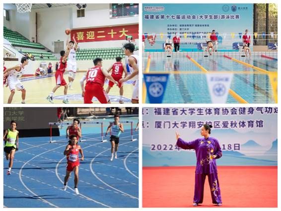 福建省运动会每四年一届,是我省体育运动的最大盛事,代表福建省竞技体育的最高水平。本届省运会大学生部赛事共设19个大项比赛,共有全省82所院校,8700多名运动员、教练员,800余名裁判员参赛,赛程周期长达半年。厦门大学承办了省运会大学生部健身气功、游泳、篮球(甲B组)等三项赛事,同时派出运动员和教练员近200人,参加了包括甲A组田径、游泳、女子篮球、羽毛球、网球、定向越野、跳绳、健身气功和甲B组男子篮球、足球、武术、啦啦操等12个项目的比赛。