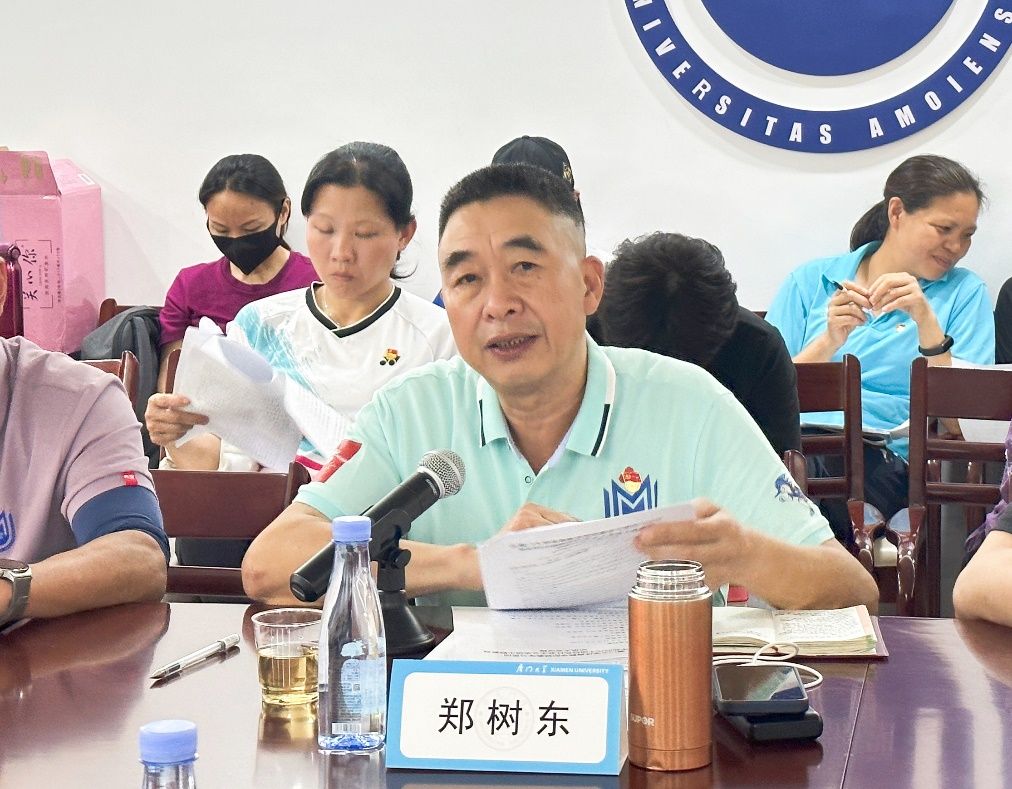 4月17日下午,厦门大学体育教学部党委召开学习贯彻习近平新时代中国特色社会主义思想主题教育动员会议。体育教学部党委书记郑树东主持会议并作动员讲话。校第三巡回指导组组长蔡郑伟到会指导并讲话。校基层党建工作联络员白锡能、体育教学部党委委员、全体党员教师和离退休党员教师代表参加会议。