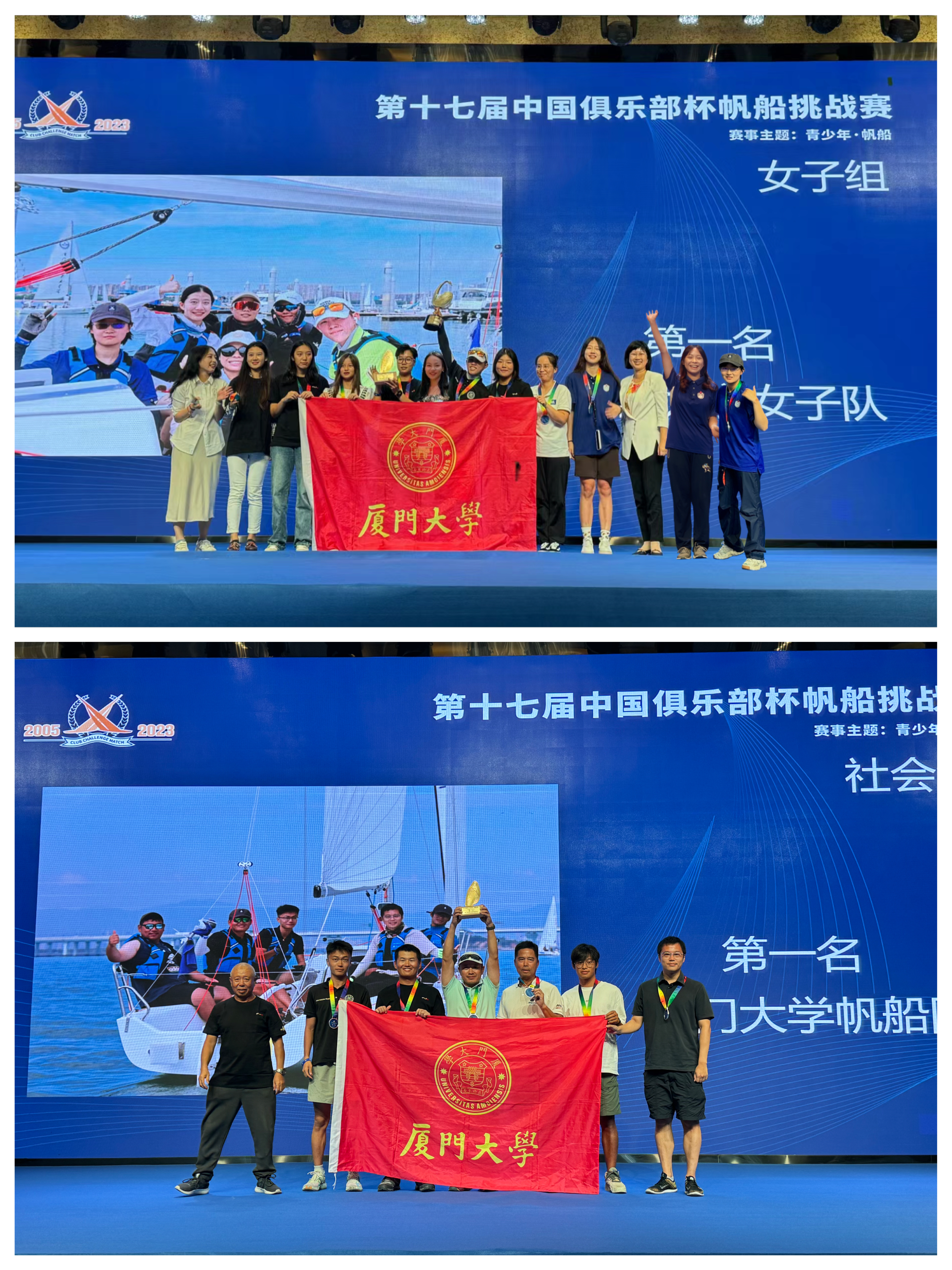 2023年10月21-24日,第十七届中国俱乐部杯帆船挑战赛在厦门市厦金湾海域扬帆起航。厦门大学帆船队派出两支队伍参赛,经历四天鏖战,夺得社会组和女子组两项冠军。