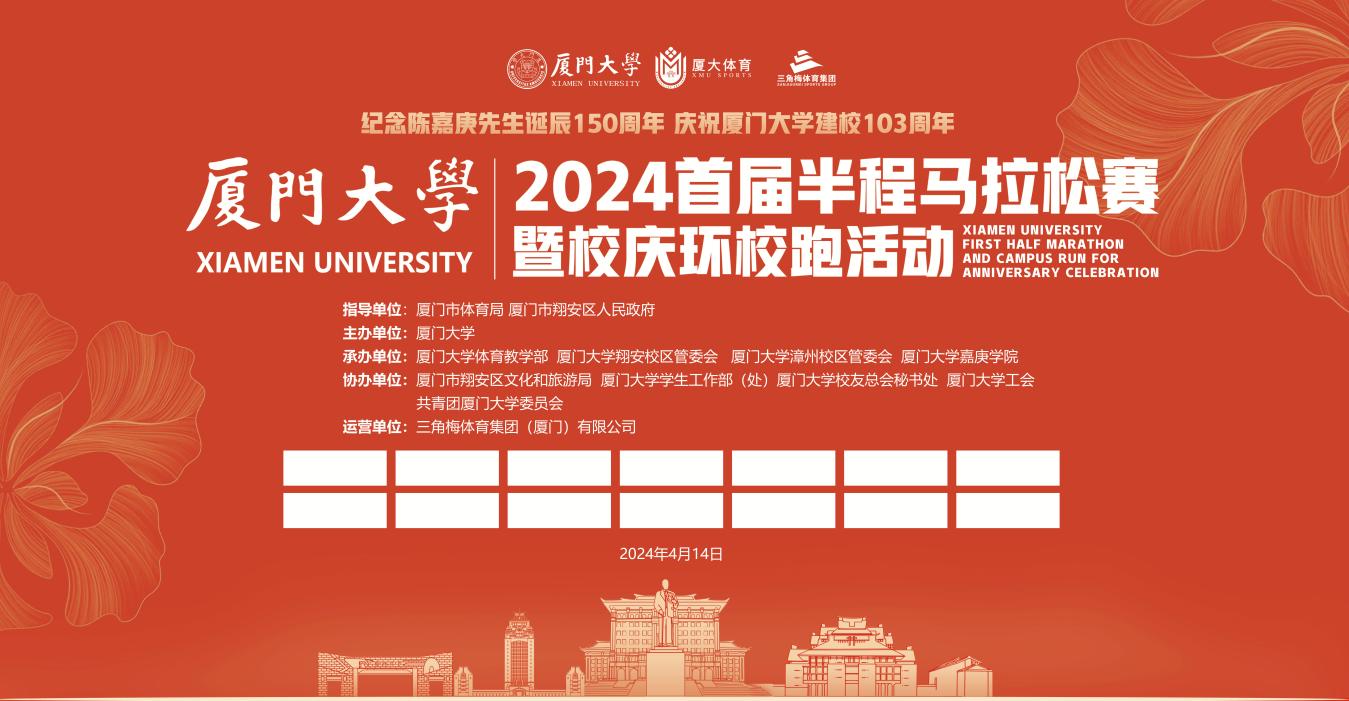本届赛事由厦门市体育局、厦门市翔安区人民政府指导;厦门大学主办;厦门大学体育教学部、厦门大学翔安校区管委会、厦门大学漳州校区管委会、厦门大学嘉庚学院承办;厦门市翔安区文化和旅游局、厦门大学学生工作部(处)、厦门大学校友总会秘书处、厦门大学工会、共青团厦门大学委员会协办;三角梅体育集团(厦门)有限公司独家运营。