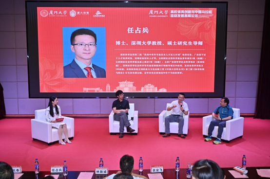论坛上,中国科学技术大学博士生导师袁业飞教授、深圳大学体育学院任占兵教授、厦门大学体育教学部何元春教授和黄力生副教授等专家学者以及部分兄弟高校观摩团队、部分省市体育主管部门代表以及热爱跑步的社会与校园跑者参会。厦门大学体育教学部副主任吴飞腾主持论坛,厦门大学体育教学部刘秀霞博士担任圆桌对话主持人。