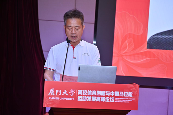 体育教学部主任林致诚教授在致辞中表示,本次论坛是厦门大学首届半程马拉松赛的重要配套活动之一。厦门大学将以此次论坛为契机,进一步加强与国内外高校、体育组织的交流与合作,为马拉松事业和高校体育事业高质量发展贡献智慧和力量。
