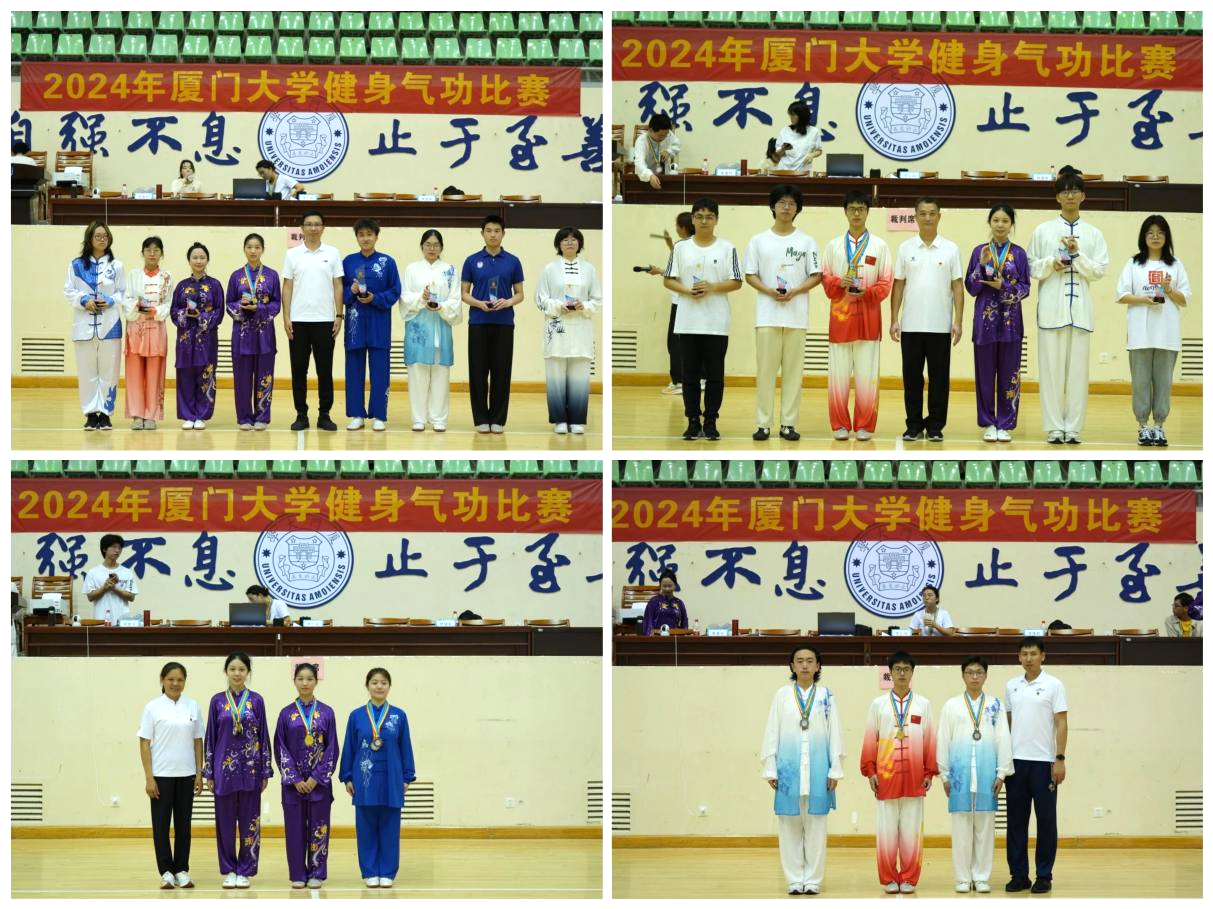 本次比赛在思明校区明培体育馆集中开展,并时隔6年后恢复了教工组比赛。比赛共设置8个功法比赛项目,其中大舞、马王堆导引术、导引养生功十二法和太极养生杖等4个项目为首次增加。体育馆内,参赛师生各展身手,竞赛氛围十分浓厚。比赛最后,体育教学部党委副书记曾天从等老师为学生组各项目各组别前三名选手及思明校区团体总分前八名、翔安校区团体总分前六名的单位颁奖。