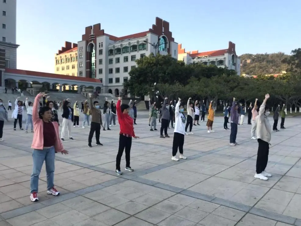 而在课余、活动之外,八段锦也成了厦大师生的日常课间操。每个工作日早上9:30,当八段锦的音乐在厦大校园响起,嘉庚广场、各个学院门口空地的练操点便会准时聚集很多师生,跟着音乐开始锻炼。