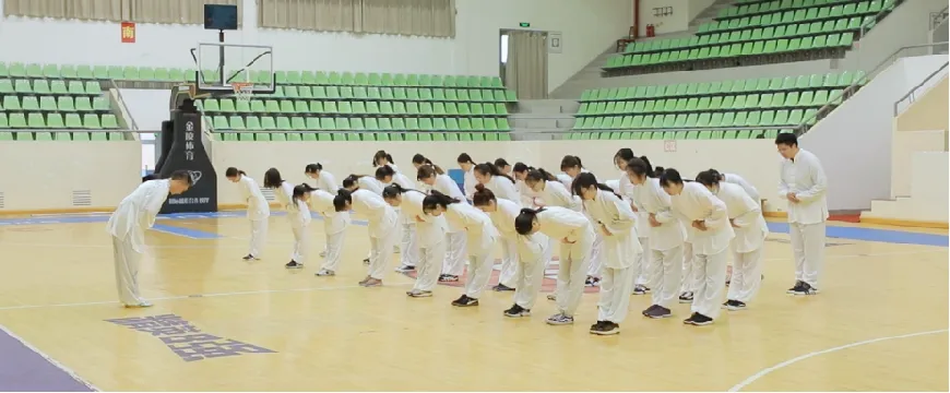 每堂八段锦课,李仁松和同学们都会有一个小小的“仪式”:课堂开始和结束时,他们会将双手虎口交叉相握,叠于腹部,互相鞠躬敬礼。“中国的传统文化就讲究礼节。我希望能通过课堂,向同学们传递八段锦背后的中华文化。”李仁松说道。