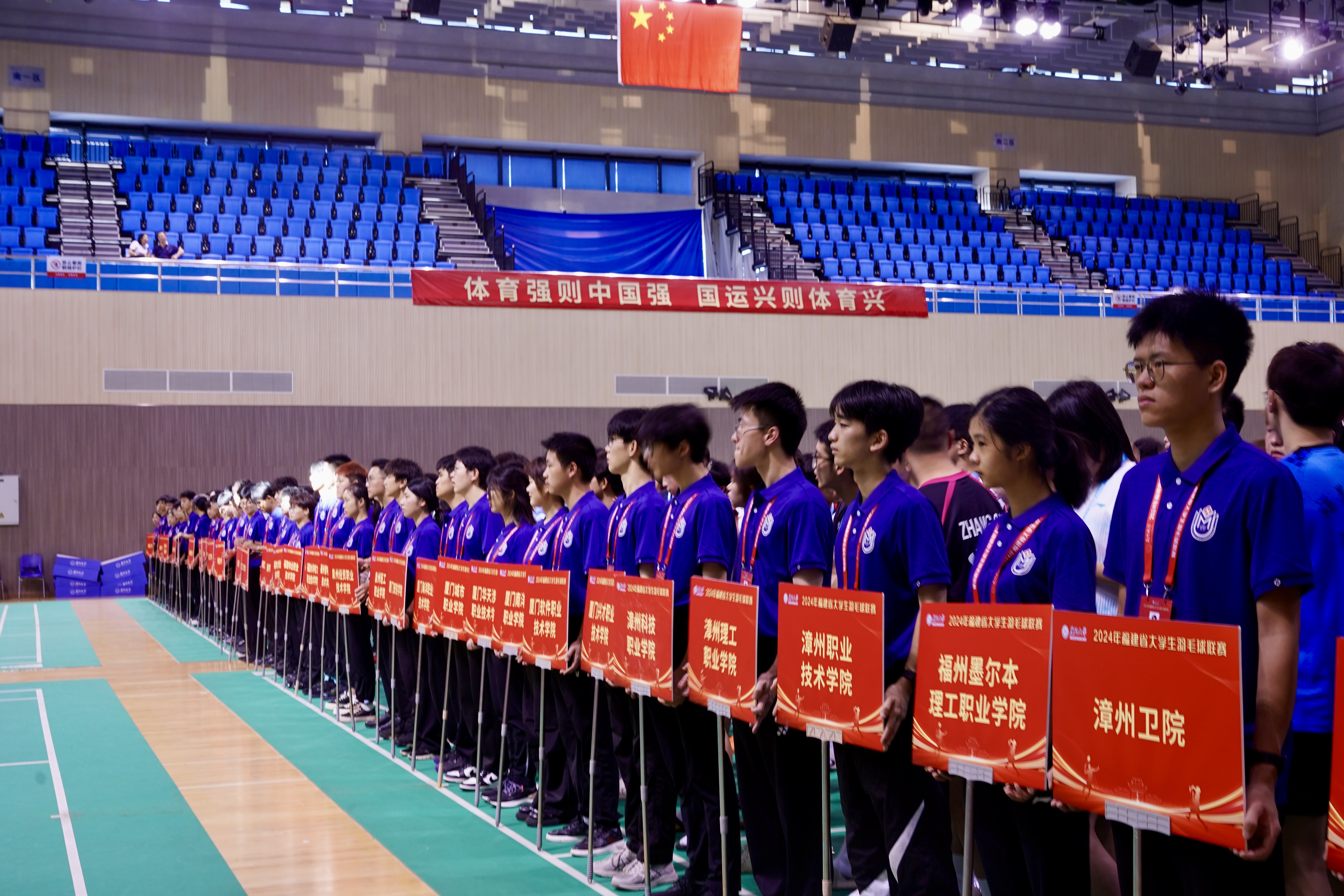 最后,在全场热烈的掌声中,陈丽英宣布2024年福建省大学生羽毛球联赛正式开幕。
