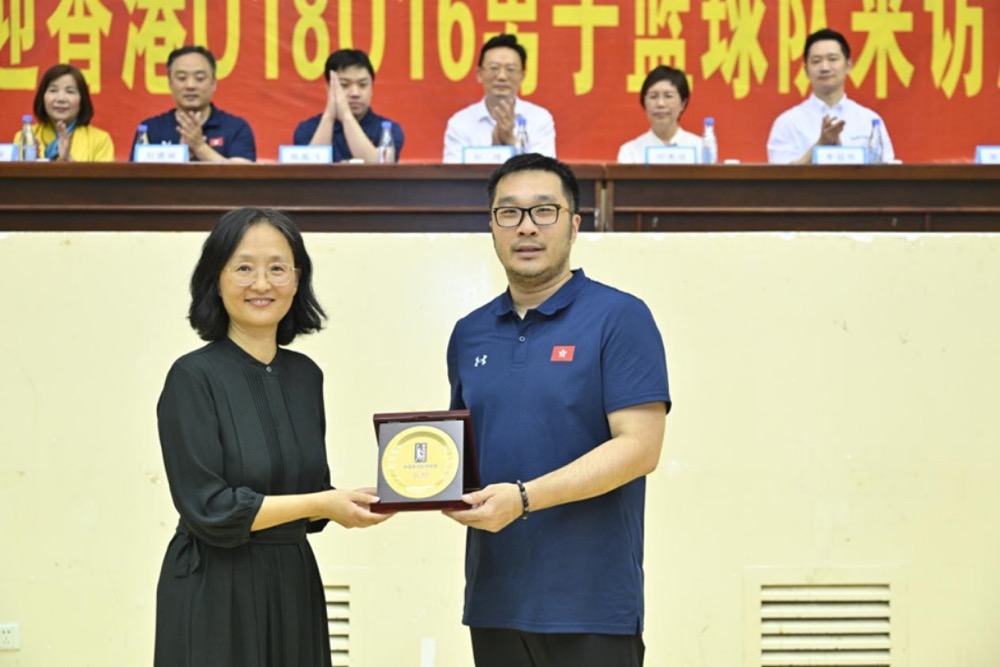 随后,刘钟南与周致人互赠纪念品,表达了对两地篮球事业的美好祝愿。