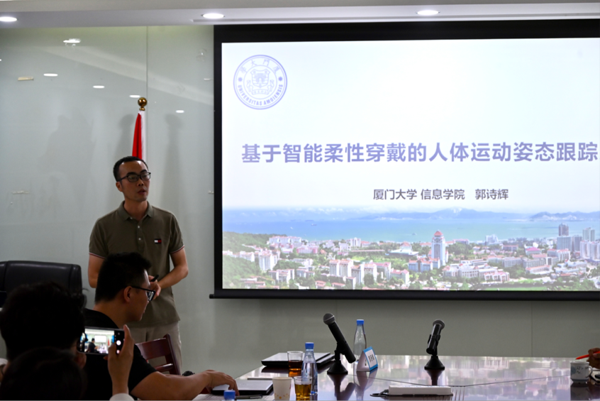 2024年9月9日晚,厦门大学体育学术沙龙系列之专家讲座(第一期)在思明校区体育教学部三楼大会议室成功举办。此次沙龙吸引了来自校内外的40余名师生参与。本期主讲嘉宾是厦门大学信息学院郭诗辉副教授,讲座主题为《基于智能柔性穿戴的人体运动姿态跟踪系统》。