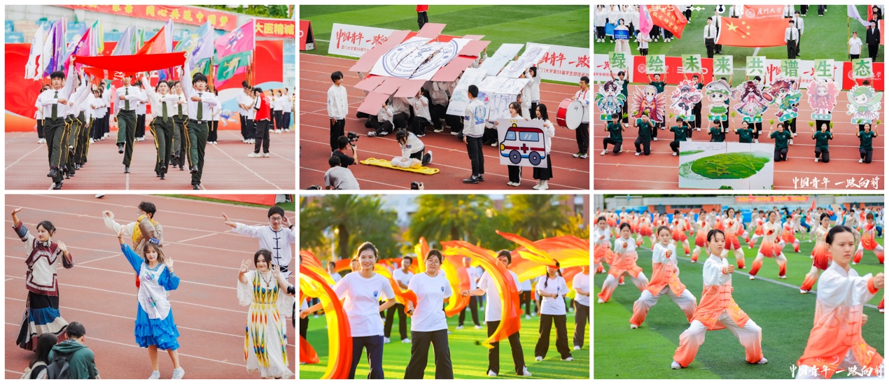在为期两天的体育盛会中,厦大学子们青春飞扬。赛道与沙坑中,运动健儿们英姿飒爽斗志昂扬,展现出速度与力量的完美交融;赛道之畔,观赛师生摇旗呐喊鼓声连连,热血澎湃激情扬。健身气功八段锦、大型团体操等精彩表演轮番上演,为运动会增添了欢乐氛围,为比赛注入了无限动力。志愿者们的身影穿梭于体育场中,他们以周到细致的服务为比赛护航。主席台上广播员声音昂扬,以热情激昂的话语点燃全场氛围。