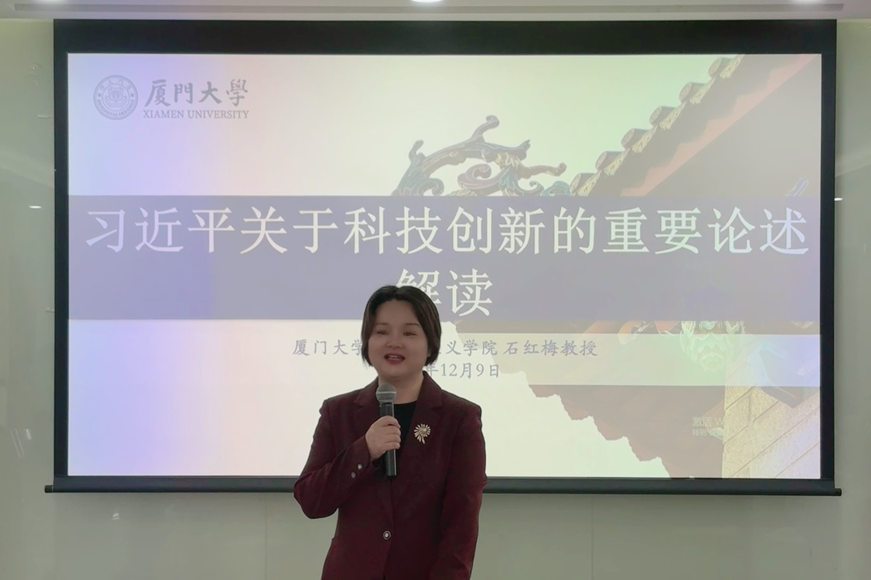 石红梅教授首先阐述了习近平总书记关于科技创新重要论述的时代背景及意义,通过丰富的案例解读了习近平总书记关于科技创新重要论述的核心要义和深刻内涵。她指出,习近平总书记关于科技创新的重要论述为推进新时代中国特色科技创新提供科学理论指南、为建设世界科技强国提供根本遵循、为构建人类命运共同体贡献中国智慧。