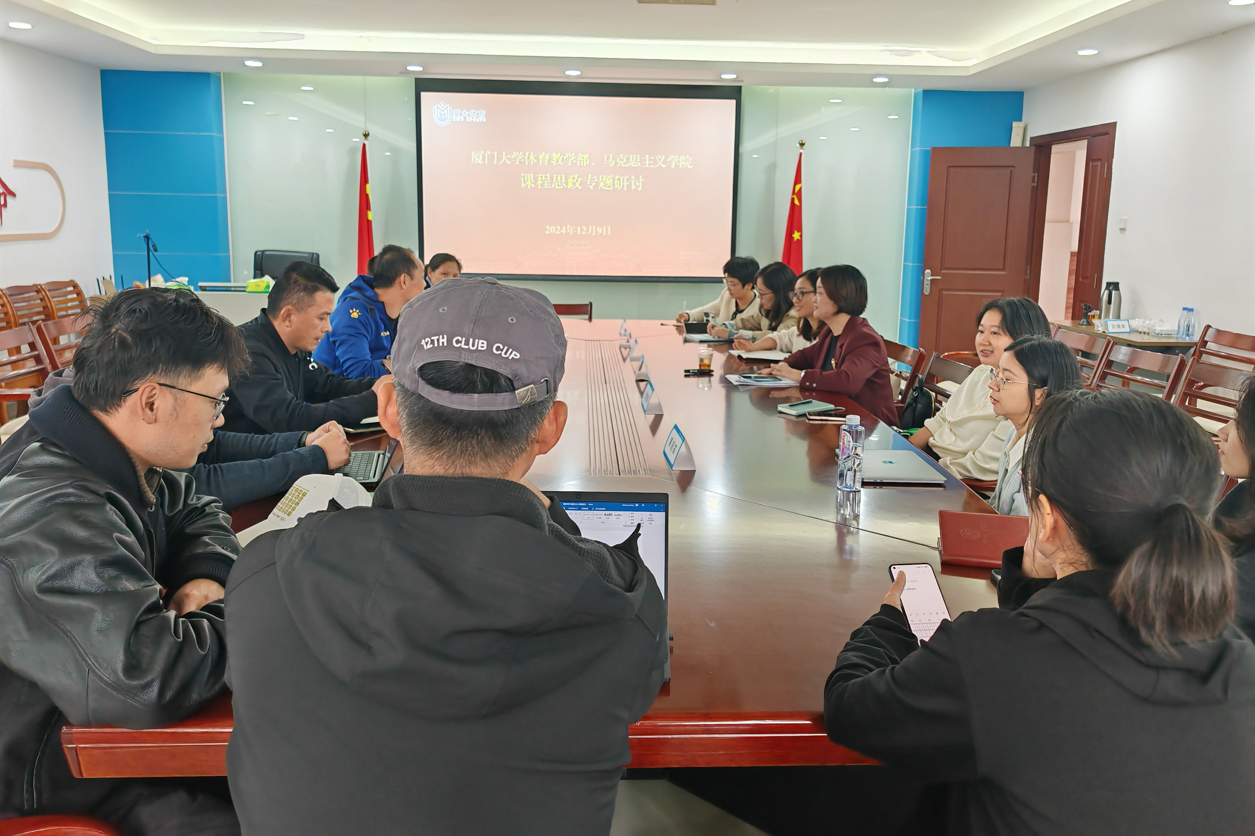专题报告会结束后,体育教学部党委和马克思主义学院党委还就课程思政建设开展了专题研讨。双方骨干教师代表围绕体育思政元素、课程思政建设、教学教改项目申报等进行了热烈讨论,为后续课程思政建设的理论创新与实践探索打下良好基础。