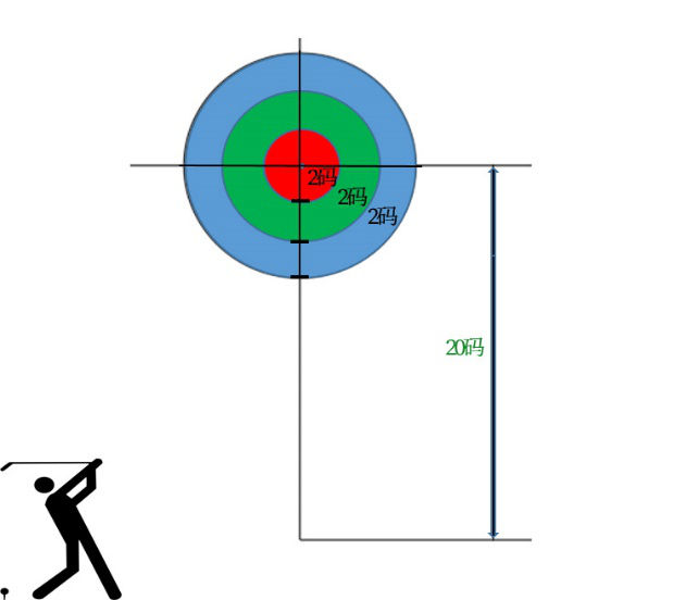 近切比赛选杆不限,每人四次切球机会。比赛场地内距发球台20码处设置目标筐,并以目标筐为中心,设半径为2码、4码、6码三个目标圈示为有效计分区域。