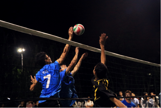 晚七点,本届新生杯最后一战打响,经济学院与国际学院的姑娘们展开了激烈的女排冠军角逐。