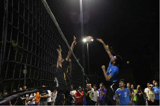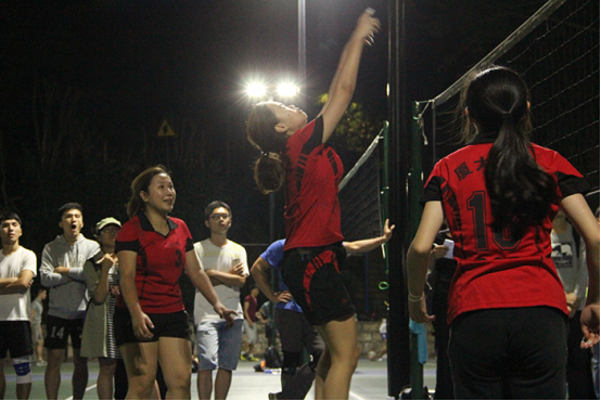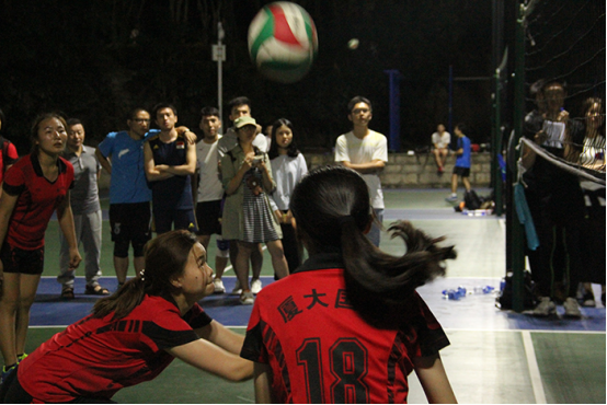震耳的呐喊声响彻暮色的天空,东苑球场亮起的灯点燃着女排姑娘们巾帼不让须眉的豪气。