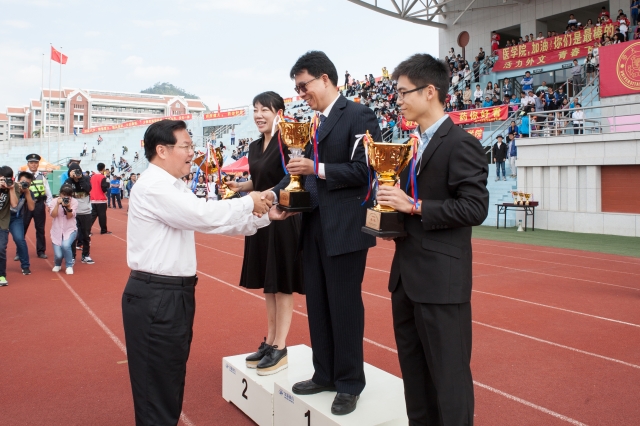 一年一度秋光美,不似春光,胜似春光。在这秋光里,11月4日,2016年厦门大学第51届学生田径运动会在翔安校区隆重召开。校长朱崇实,副校长杨斌、邬大光、韩家准、詹心丽,校长助理李初环、邱伟杰,各机关部处负责人,各学院党政领导,师生代表出席了开幕式。开幕式由体育教学部主任林致诚主持。