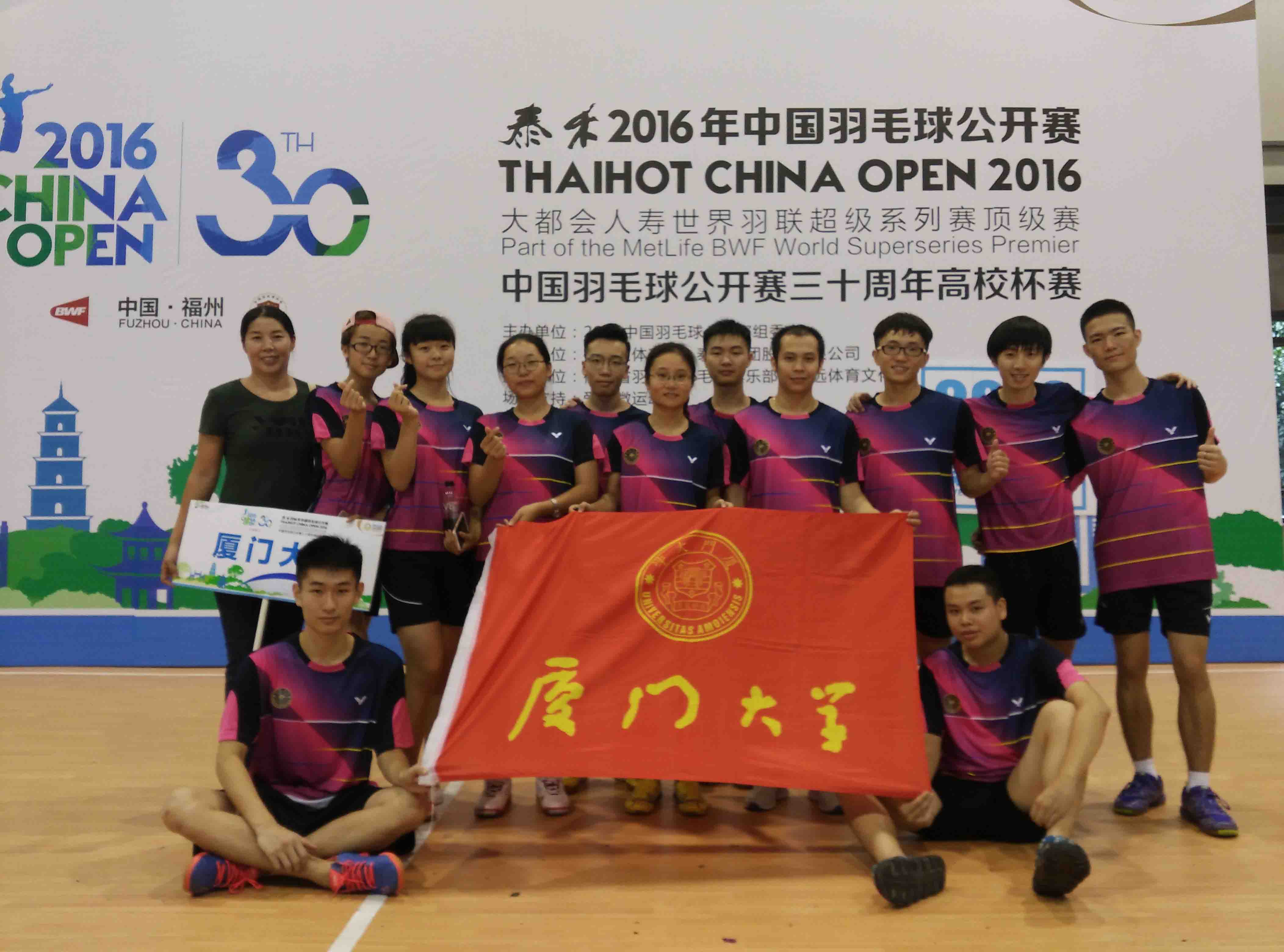 2016年10月29日,中国羽毛球公开赛三十年周年高校杯赛在福州开幕,由2016中国羽毛球公开赛组委会主办,包括厦门大学、华侨大学、集美大学等26所省内高校,进行混合团体赛,每队12名运动员,包括男单、男一双、混双、女双、男二双五个项目。厦门大学代表队在第一天的小组赛中全部以5:0的成绩拿到了小组第一率先出线,又经过两场苦战闯进四强。在半决赛中2比0领先的情况下被最终获得冠军的福建师范大学连扳两局,在决胜局中以几分之差惜败,最终获得季军。