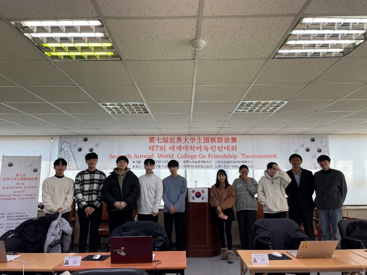 2022年12月24日12点,第七届世界大学生围棋联谊赛第九站比赛打响,由厦门大学队VS韩国大学生联队。经过两轮16盘比赛的激烈较量,厦大围棋队分别以6:2及5:3,总成绩11:5的优异战绩战胜对手,获得第九站比赛的优胜。厦大参赛的八名队员为来自厦门大学各学院在校学生。韩国大学生联队来自韩国的五所大学:明知大学、延世大学、国民大学、首尔大学、梨花女子大学,队员由韩国大学围棋联盟选拔产生。