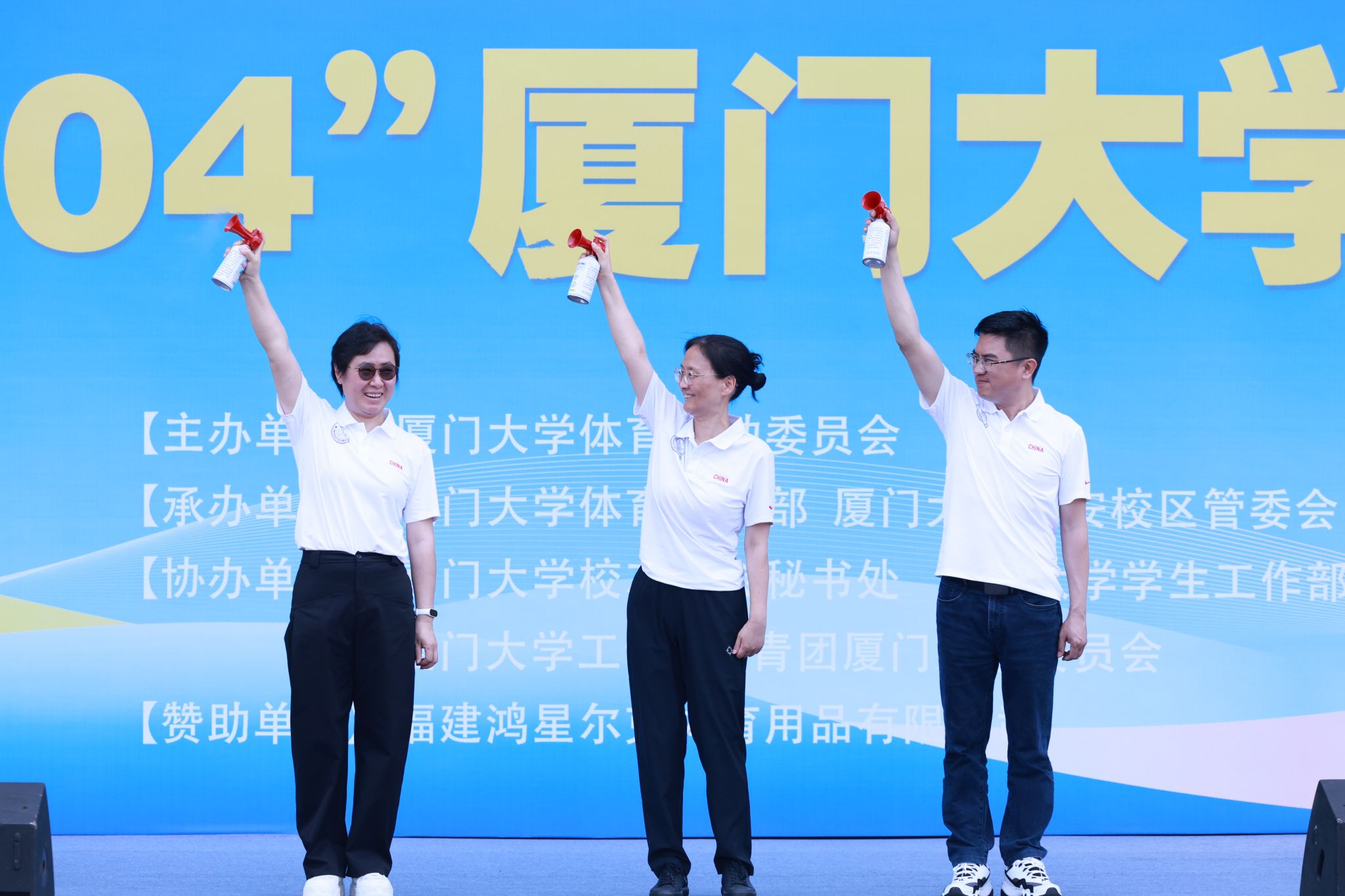 校党委副书记、组织部部长孙理,厦门大学附属演武小学书记、校长王志勤,思明区青少年业余体育学校校长吴志勇,思明区教师进修学校书记吴伟华,比亚迪品牌及公关处品牌营销总监方宁,鸿星尔克集团董事长助理林秀欣等出席起跑仪式。体育教学部部主任林致诚、副主任翁兴和分别主持思明校区和翔安校区起跑仪式。