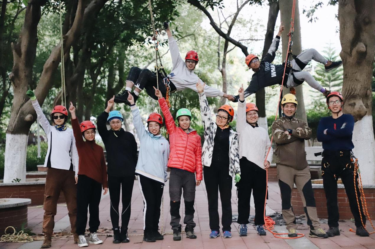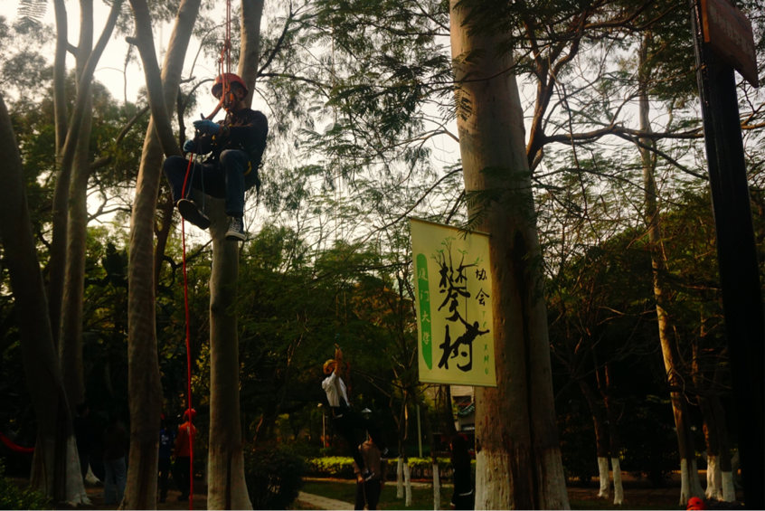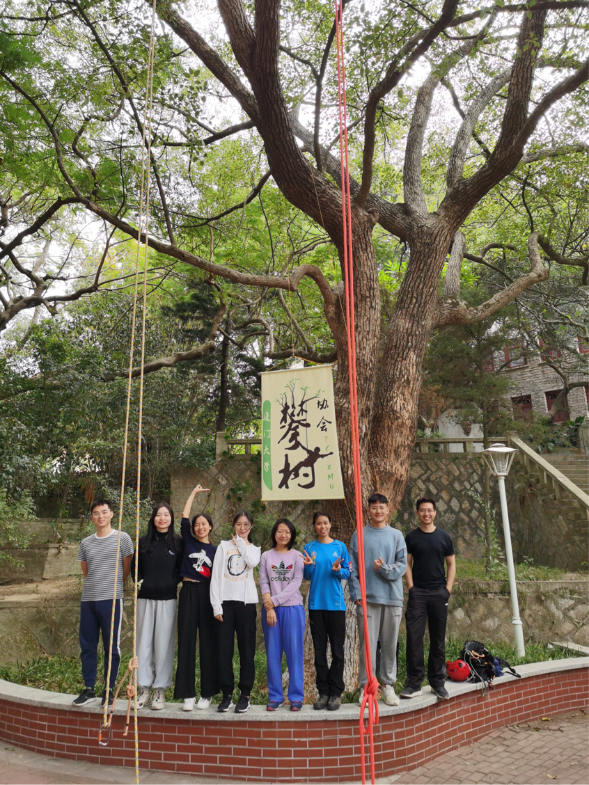 简介:厦门大学攀树协会起源于厦门大学引进的攀树体育课程,正式成立于2013年10月,是中国大陆第一个以攀树运动为核心的社团。成立伊始,厦大攀树协会便秉持“攀大树、益身心、行公益”的口号,并致力于将自然、挑战、疗愈、服务的理念融入协会文化。攀树协会鼓励学生走进自然、感受自然、了解自然,在攀树的过程中了解树木、保护树木。如今大学生或承受繁重的学业压力,或面临人际交往方面的考验等,而攀树可缓解学生日常生活中各方面的压力,起到疗愈身心的作用。攀树是一项可培养学生冒险精神,激发学生勇气,引导学生独立思考的运动,有利于学生在突破自我中认识自我。学生们在攀树的过程中了解树、热爱树,在掌握一定的树木学知识和攀树技能后,可以照顾好周遭环境的树,服务社会,承担起公民责任和社会义务。在人与自我,人与他人,人与树的互动过程中,学生参与攀树运动可以发挥磨练意志、锻炼身体,疗愈身心,服务社会,身心灵兼修的效果。