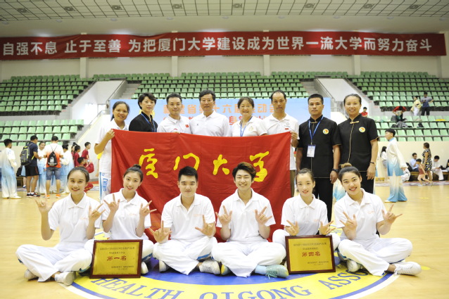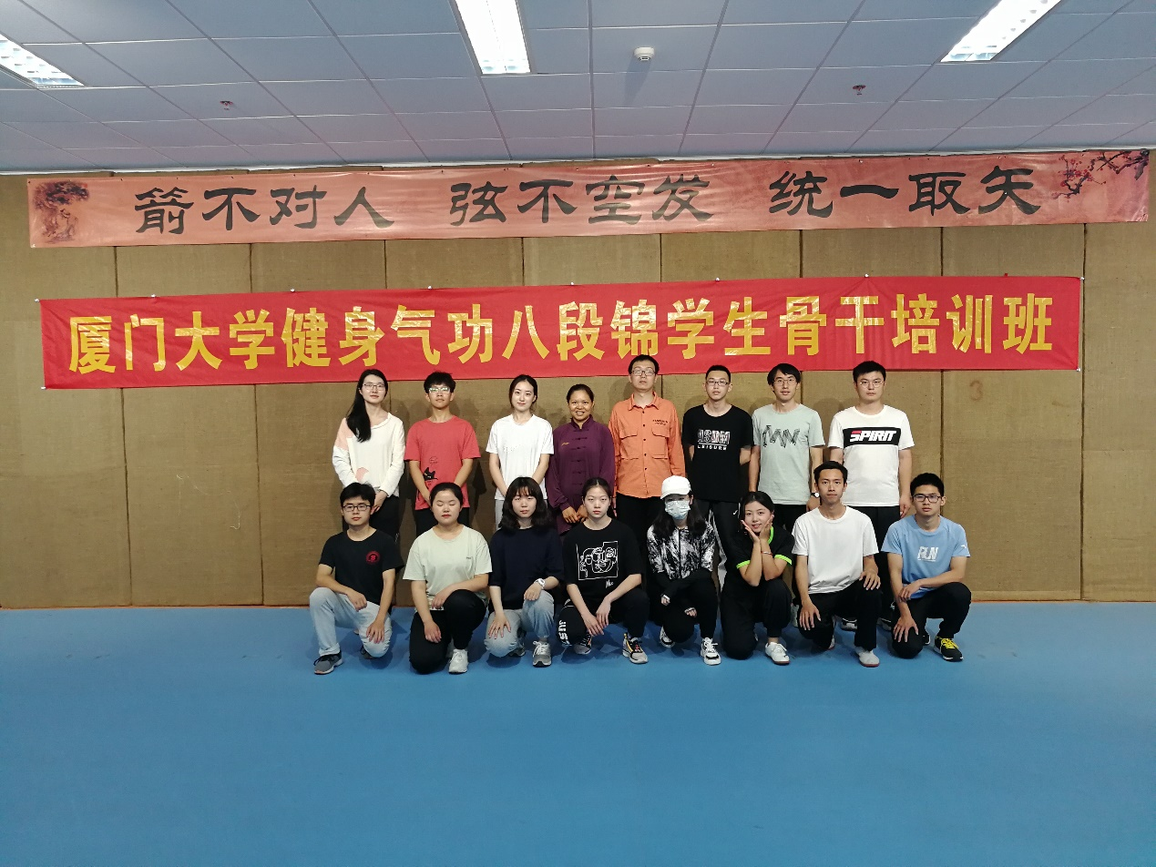 厦门大学健身气功协会成立于2011年,2014年首次组队参加全国高校健身气功比赛,2015年和2016年组队参加厦门国际武术大赛健身气功专项比赛及福建省全民健身运动会健身气功站点联赛总决赛,2017年参加福建省首届大学生健身气功比赛,2018年参加福建省运动会(大学生部)健身气功比赛,2020年参加全国健身气功八段锦网络大赛和首届中英健身气功八段锦网络大赛,训练成绩稳步提高。厦门大学健身气功协会经过武术教研室李仁松、郭琼珠、曾秀端和黄惠玲等几位老师的不断努力,队伍不断发展壮大,厦门大学健身气功队更是成为我校健身气功爱好者训练、提高技术水平、参加对外交流比赛和展示自我风采的平台。