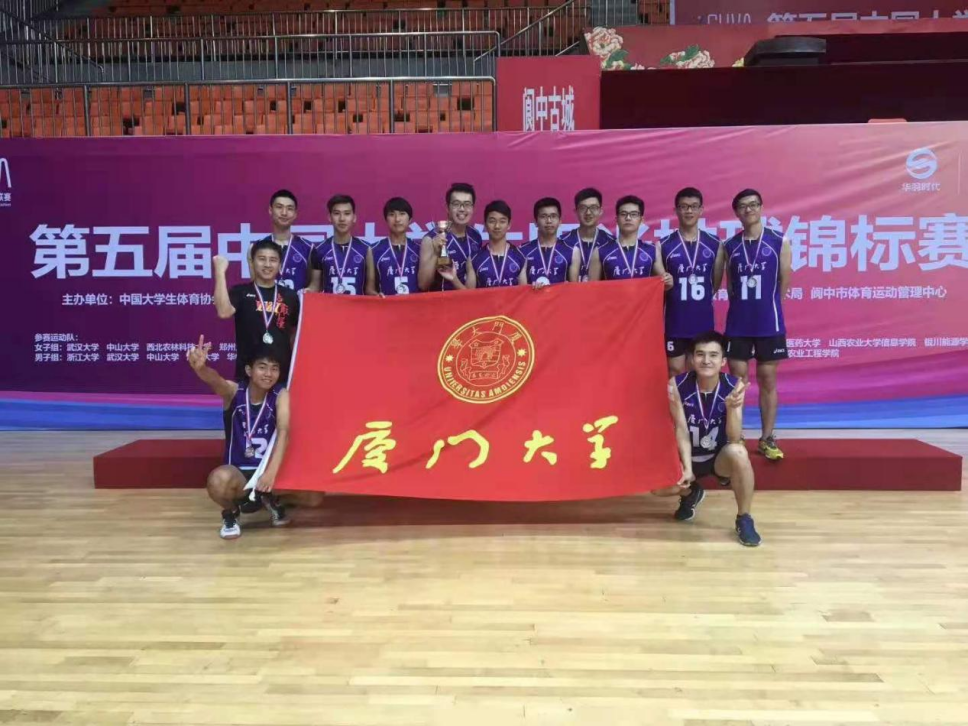 厦门大学男子排球队是一支具有光荣传统、充满朝气的队伍,由一群来自各个学院热爱排球的本、硕、博的普通生组成。他们汲取中国女排团结拼搏、永不言败的精神,认真、扎实进行每一次训练;他们以过硬球技和坚韧品质,在各级重大赛事中取得辉煌硕果:省赛金奖两次、海峡两岸沙排赛冠军两次亚军一次、全国赛冠军一次亚军一次。一代又一代的厦大排球人用心用情形象诠释着排球运动在厦门大学的体教融合。