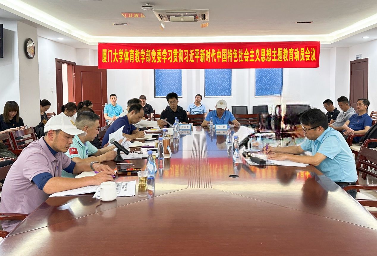 4月17日下午,厦门大学体育教学部党委召开学习贯彻习近平新时代中国特色社会主义思想主题教育动员会议。体育教学部党委书记郑树东主持会议并作动员讲话。校第三巡回指导组组长蔡郑伟到会指导并讲话。校基层党建工作联络员白锡能、体育教学部党委委员、全体党员教师和离退休党员教师代表参加会议。