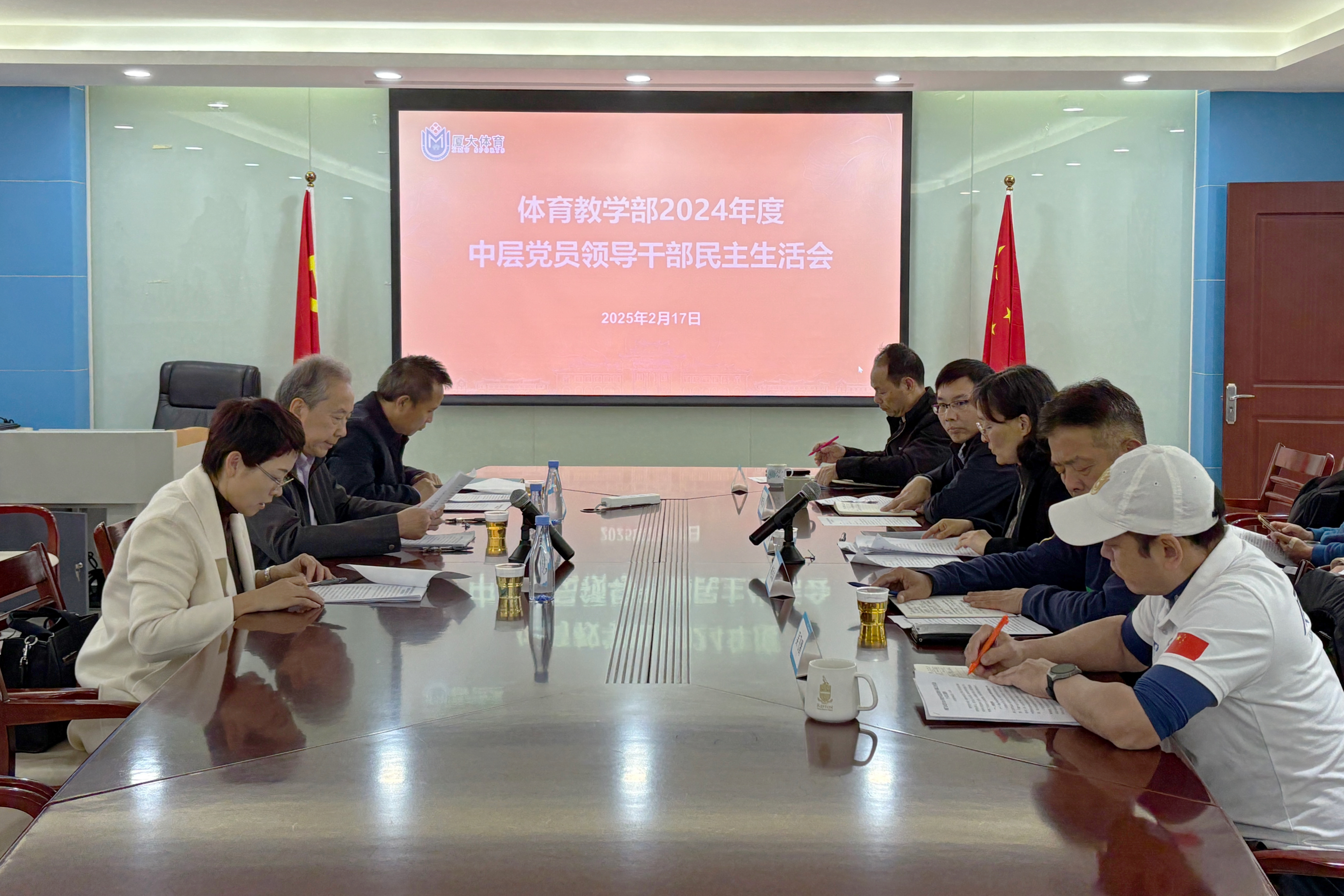 2025年2月17日下午,体育教学部召开2024年度中层党员领导干部民主生活会。校纪委委员、电子科学与技术学院党委书记石慧霞,校第二督导组副组长、校党委宣传部副部长杨机像,校基层党建工作联络员白锡能到会指导。体育教学部党政领导班子成员、党委委员、工会主席、妇委会主任、中心负责人、教研室主任、办公室主任、党务秘书、团总支书记等参加会议。会议由部党委书记刘钟南主持。