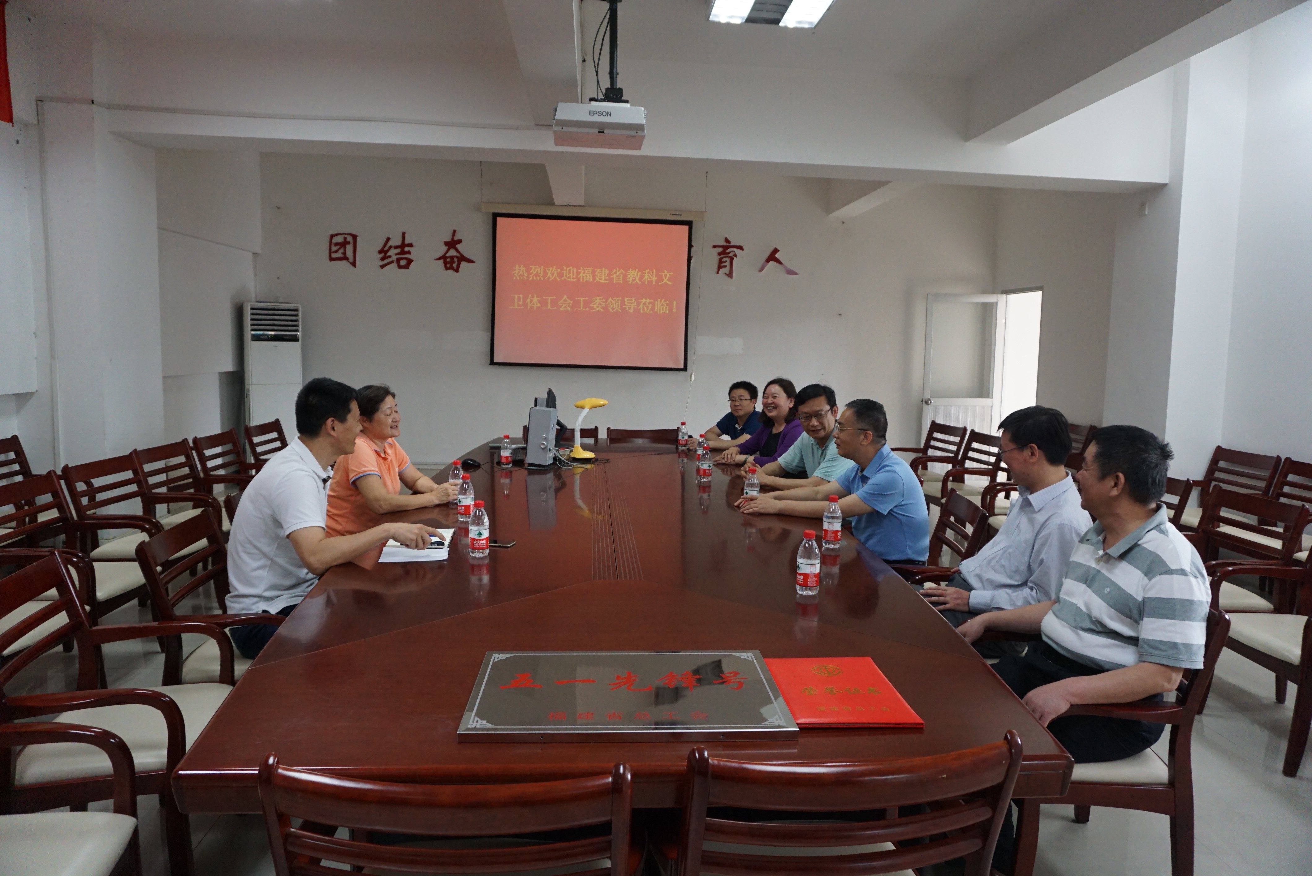5月17日下午,福建省教科文卫体工会工委郭立新主任一行,在校工会常务副主席宋毅、秦红梅的陪同下前来我部参观。