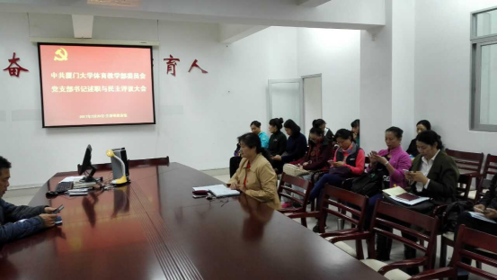 2月20日上午,体育教学部党委在体育教学部会议室召开党支部书记述职与民主评议大会。会议由郭琼珠书记主持,部党委委员、各支部全体党员参加。党支部书记纷纷发表述职演讲,详述了本支部所履行的职责与学习、活动等情况。展示了所取得的成绩,也点出了所存在的不足,并提出相应的整改措施。