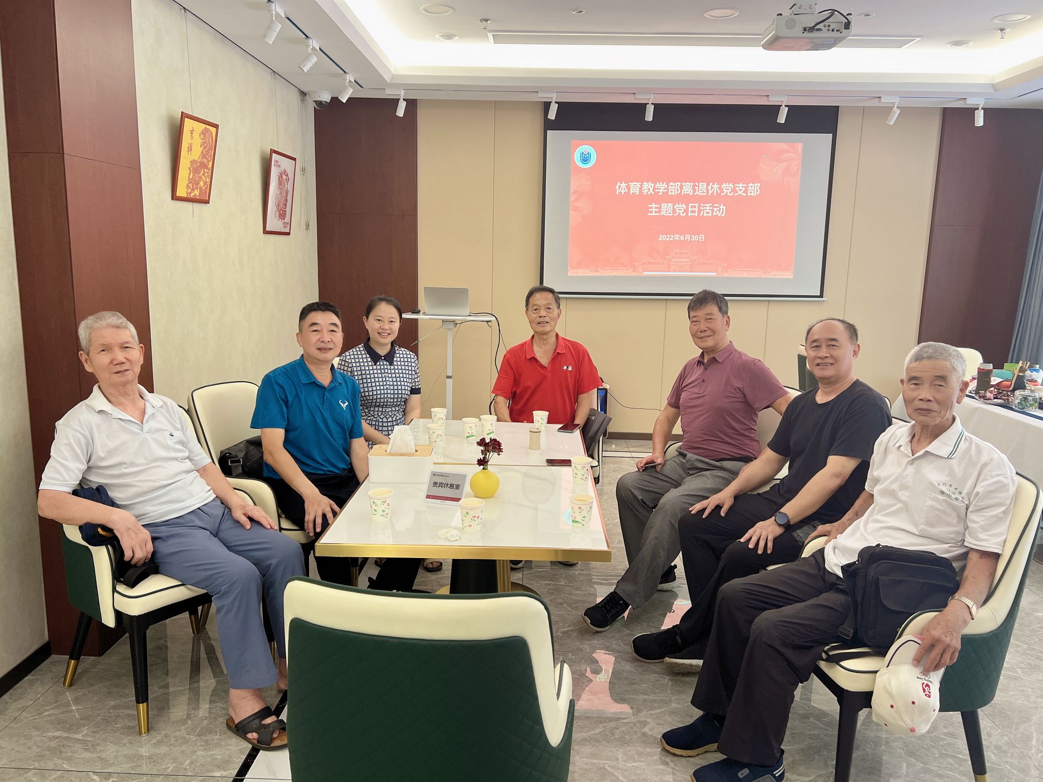 为庆祝中国共产党成立101周年,6月30日,体育教学部离退休党支部开展“迎七一”主题党日活动,教学部党委书记郑树东出席,活动由离退休党支部书记林清江主持。与会党员一同观看了习近平总书记在中国人民大学考察时的重要讲话视频,并就如何发挥余热推动教学部中心工作,助力青年教师和学生健康成长等问题开展讨论。