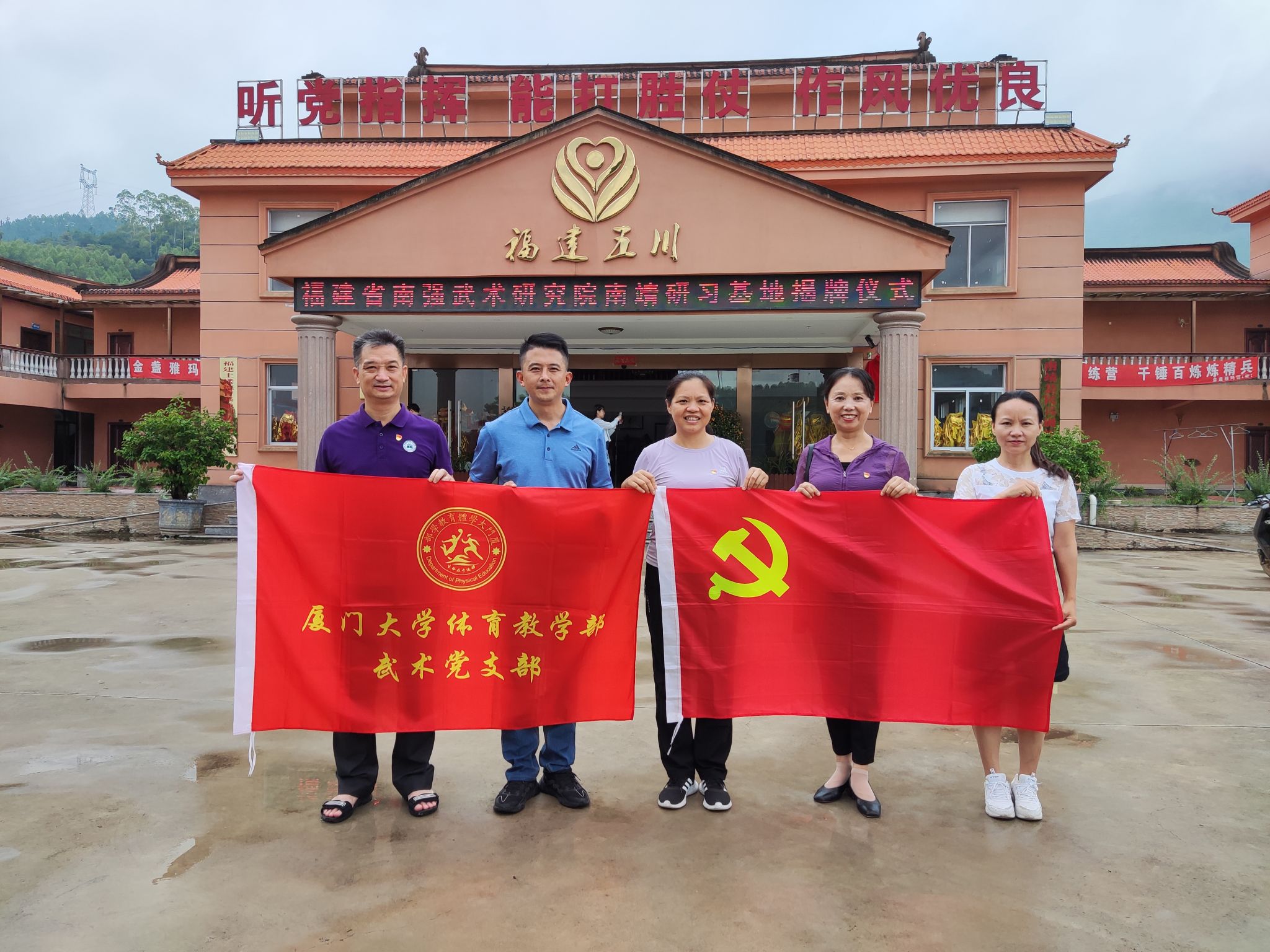 艳阳高照,繁花似锦。7月1日-2日,为庆祝中国共产党成立101周年,武术党支部党员赴福建省漳州南靖五川中小学研学实践教育基地,参与福建南强武术研究院五川研习基地(南靖)揭牌仪式,开展实地参访研学活动。与基地董事长林亚通先生、福建土楼德育基地王旭辉主任、南靖县人民武装部参谋长吴志杰同志共商福建武术发展。