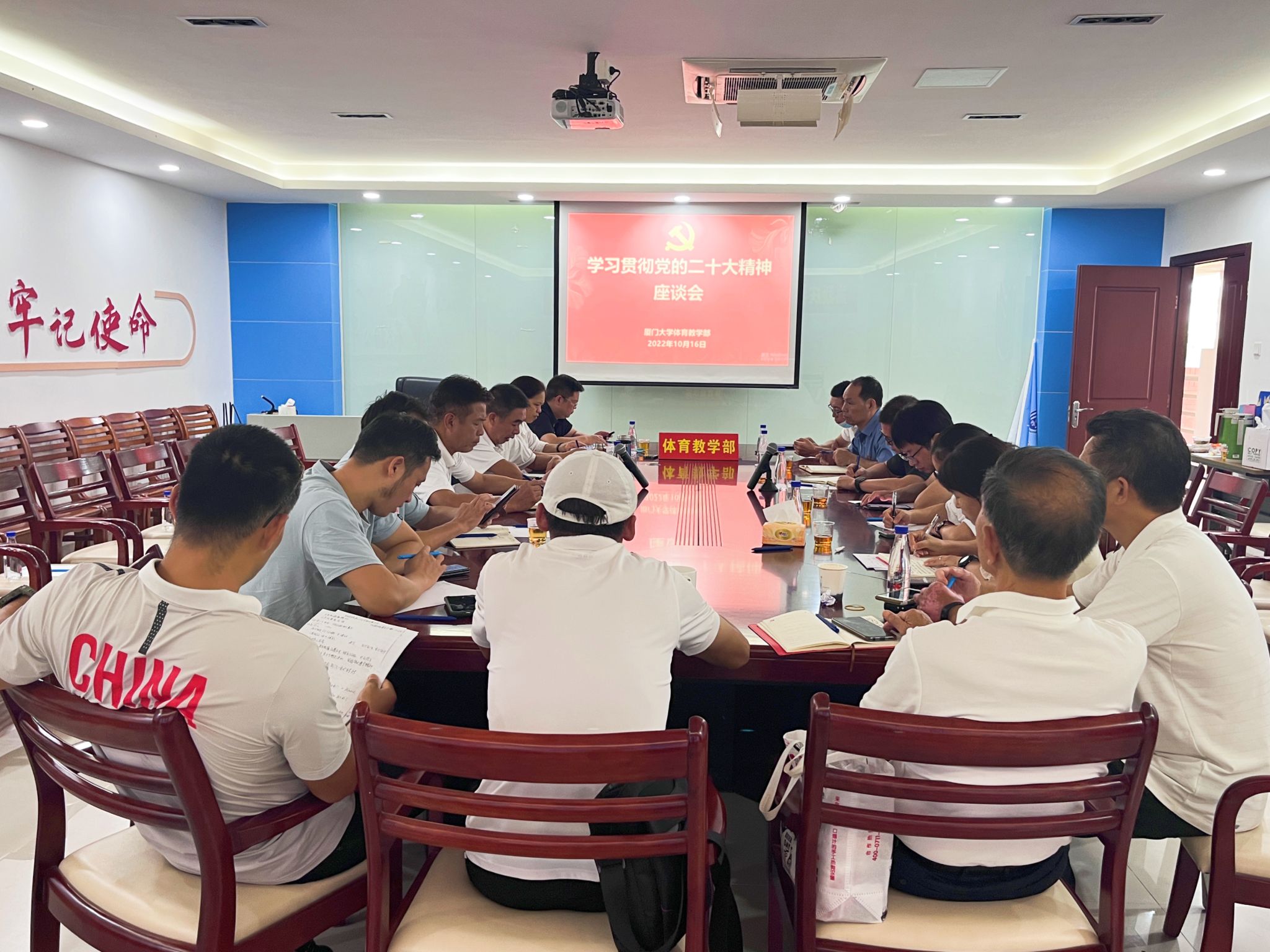 10月16日上午,中国共产党第二十次全国代表大会在人民大会堂开幕。习近平总书记代表第十九届中央委员会向党的二十大作报告。体育教学部党政班子成员、党委委员、党支部书记、中心主任和教研室主任,集体收看了党的二十大开幕会直播并第一时间举行专题座谈会,其他教职工党员在家收看直播,大家共迎时代盛会、热议报国情怀、激发强国志向。
