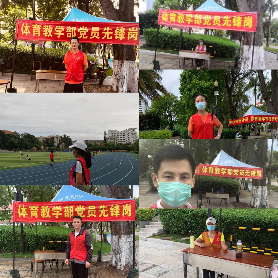 通过深化大学习,提振精气神,面对复学和防控双线作战“大考”,体育部场馆将迎来一批热爱运动的师生们,怎样有序、健康的让师生们进行运动,全体党员总结了一周来体育部党员先锋岗的执勤情况,大家积极准时上岗,对进入场馆的自行车、电动车、小孩滑板车进行劝退,指引他们停到指定位置,看到跑步过程中聚集的人比较多时要尽量分散,跑步过程中不要戴口罩,偶尔看到跑步姿势有问题的会耐心的对他进行纠正,黄惠玲老师看到一位锻炼着跑步时总是低着头,觉得他总有可能摔倒,她就热心的跑过去告诉他该如何正确跑步,李生老师与载水要进入篮球馆卖的师傅说道理,李仁松老师、胡立虹老师看到在场馆里有培训情况,及时跟场馆管理员沟通,让他们停止培训等等,每个老师在岗位上尽心尽责。