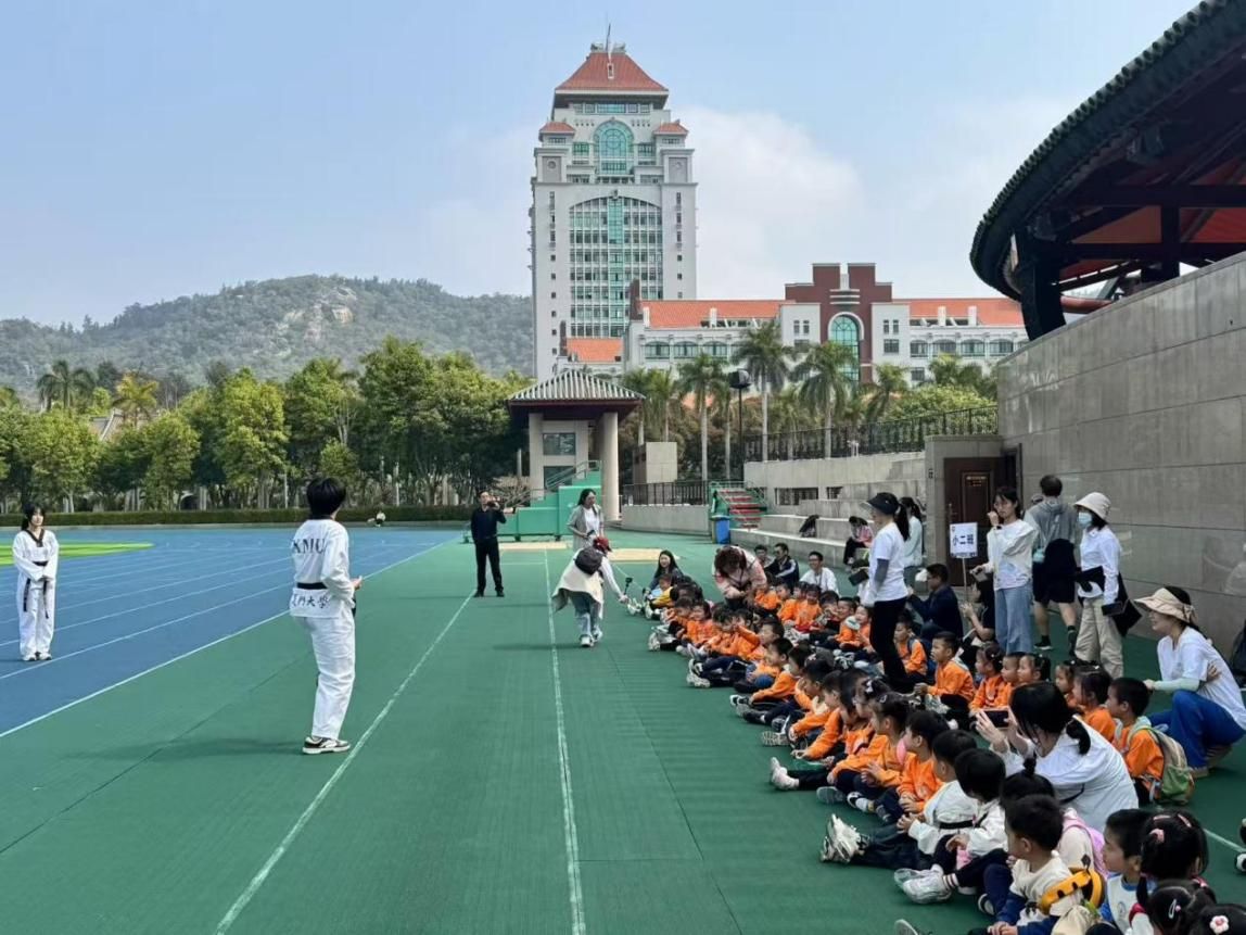 2025年3月27日上午,厦门大学演武场上热闹非凡,一场充满趣味与活力的体育活动在此开展。此次活动由厦门大学幼儿园组织,厦门大学体育部支持,精心组织跑酷社团、武术社团、跆拳道社团和毽球社团参与其中,为小朋友们带来了一场精彩纷呈的体育表演与互动。