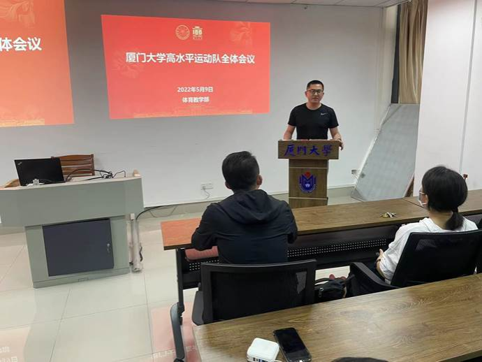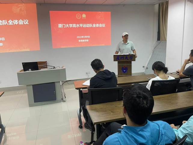 体育教学部群体竞赛与训练中心主任杨广波发言,表示将根据部里要求与各支运动队教练一起,落实科学规范管理要求,完善高水平运动队管理制度,探索构建厦大体育育人机制,促进高水平运动员成长成才。