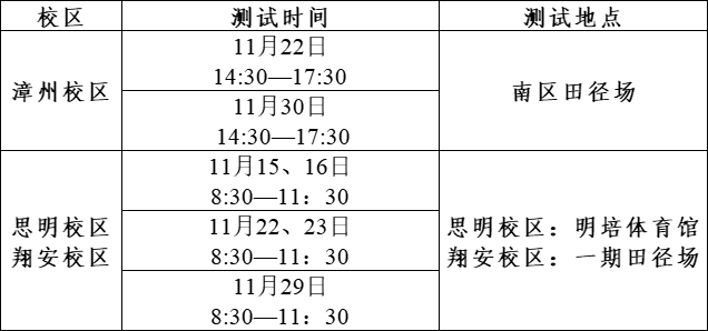 为进一步落实《教育部关于深化本科教育教学改革全面提高人才培养质量的意见》(教高〔2019〕6号)等文件管理规定,根据《国家学生体质健康标准》(2014年修订)要求:学生每学年需进行一次体质健康测试。现决定开展厦门大学2025年秋季学生体质健康测试(简称“体测”)工作,具体通知如下: